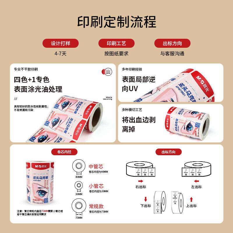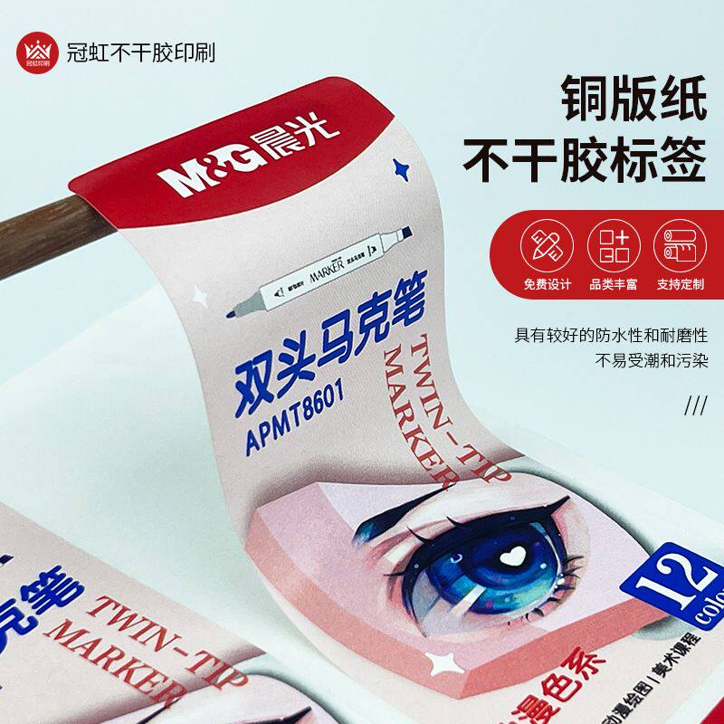 📚 铜版纸不干胶标签 表面光油逆向UV 马克笔文具盒包装用标签贴纸