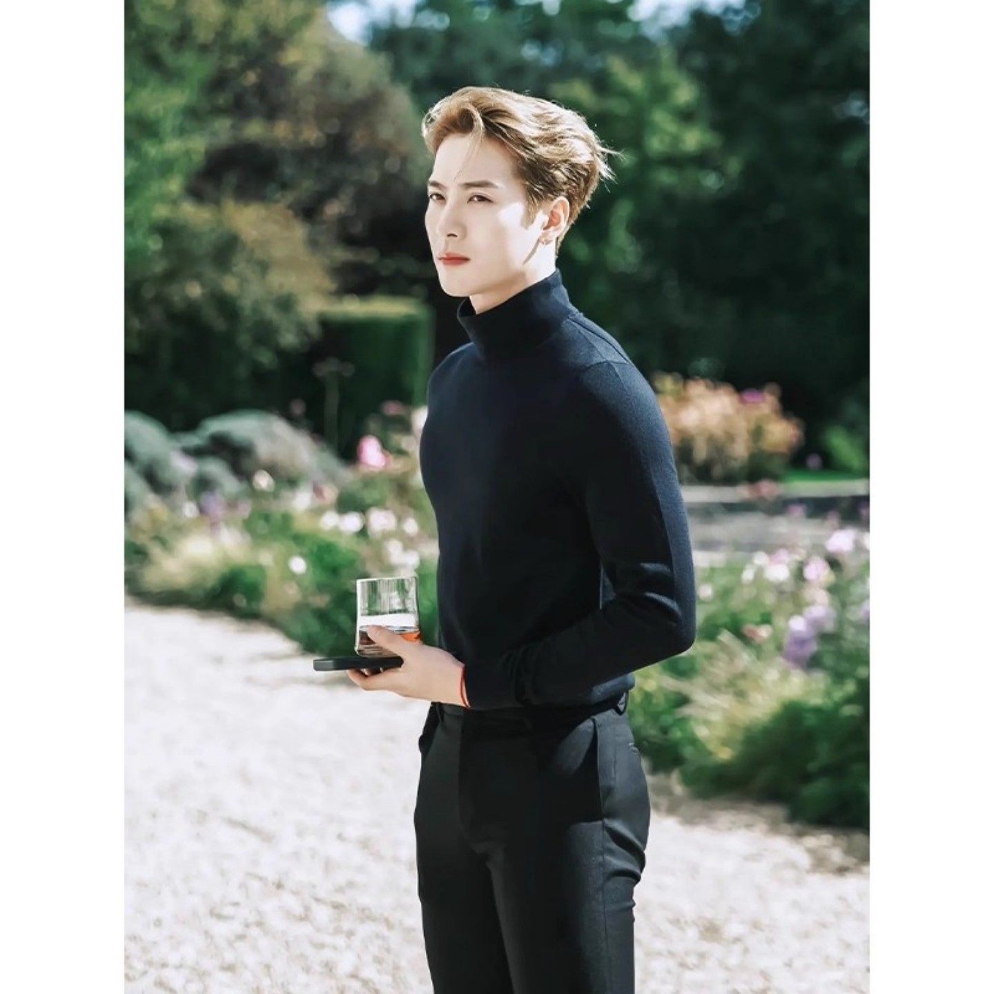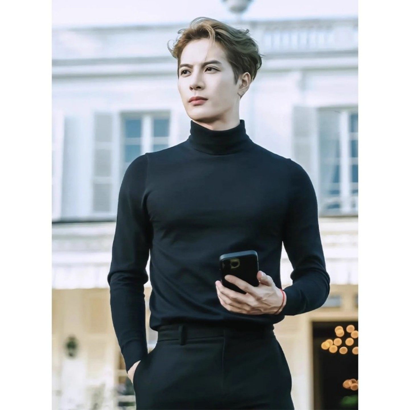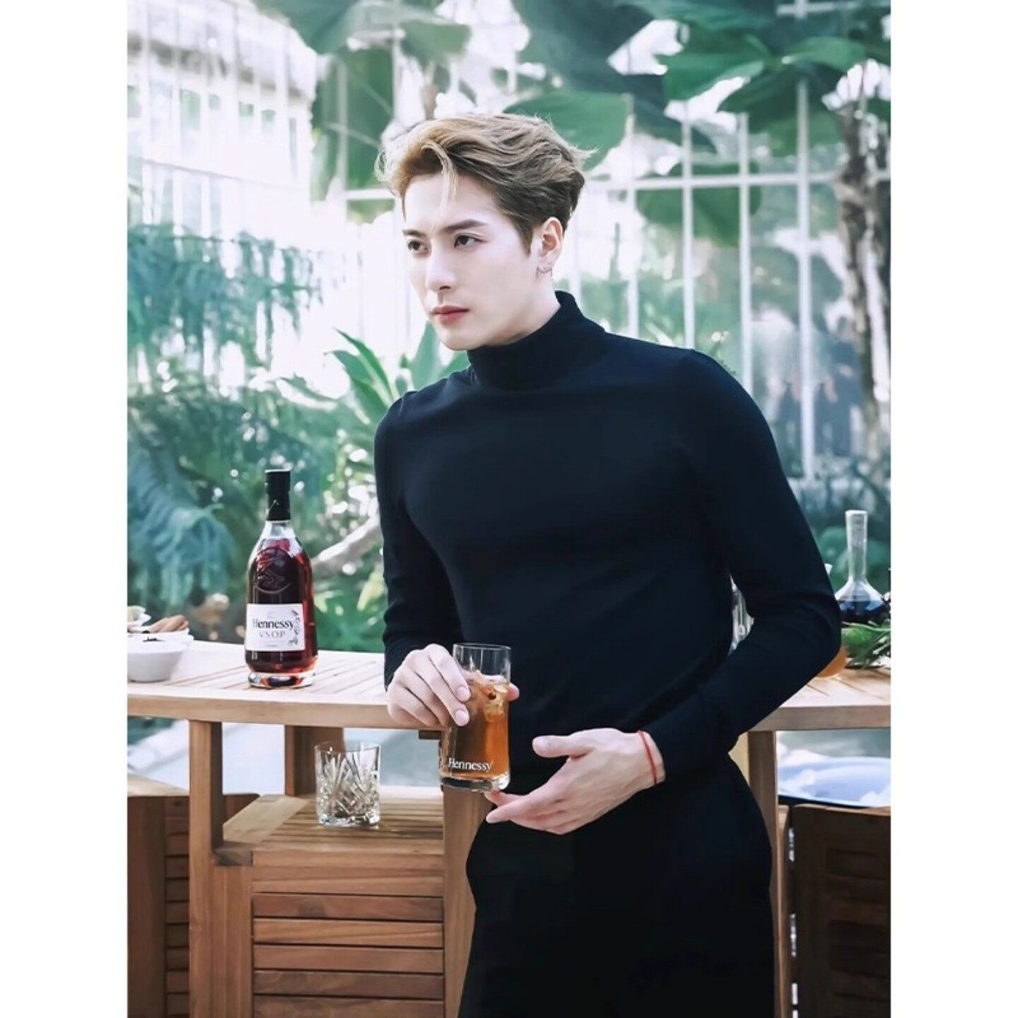 📚 王嘉尔同款高领毛衣男秋冬季人夫感穿搭针织衫修身弹力内搭打底衫