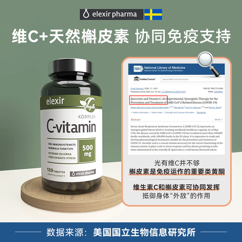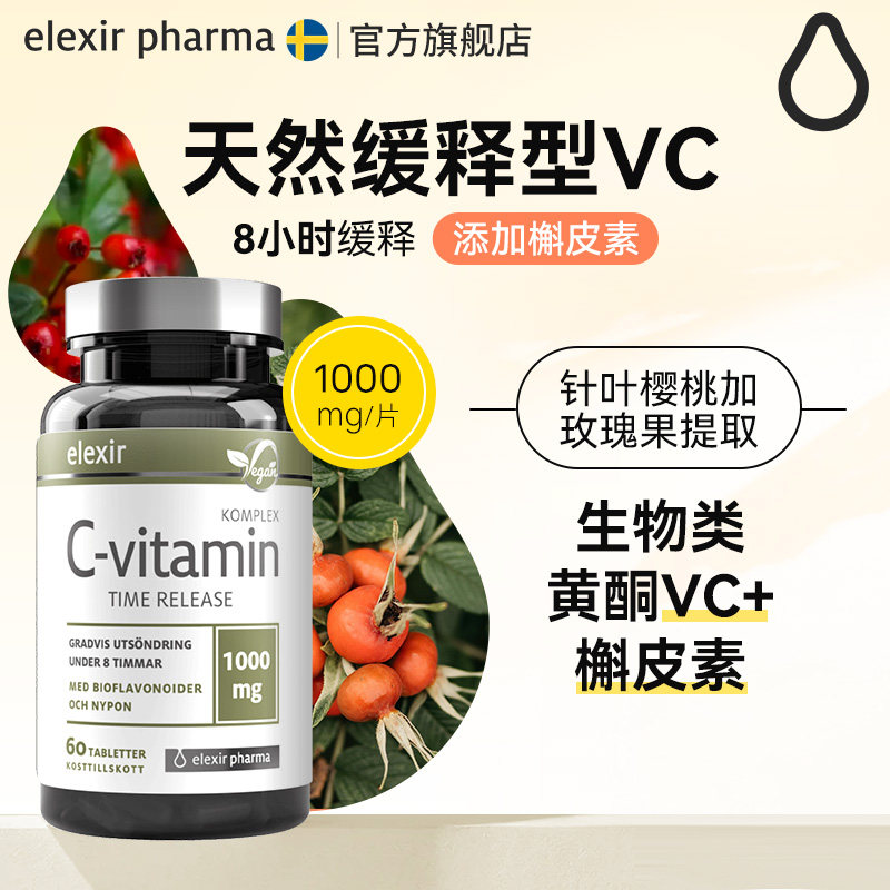 📚 Elexir针叶樱桃vc天然缓释维生素c进口成人儿童槲皮素无糖1000mg