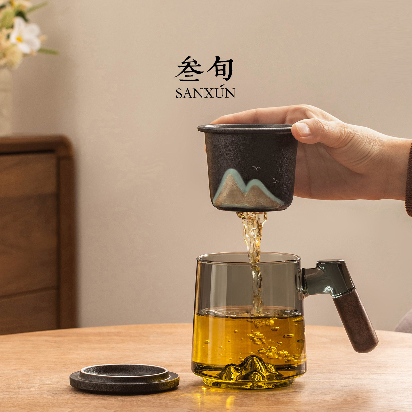 📚 叁旬山重山玻璃泡茶杯陶瓷茶水分离杯个人专用办公室年轻人喝茶杯