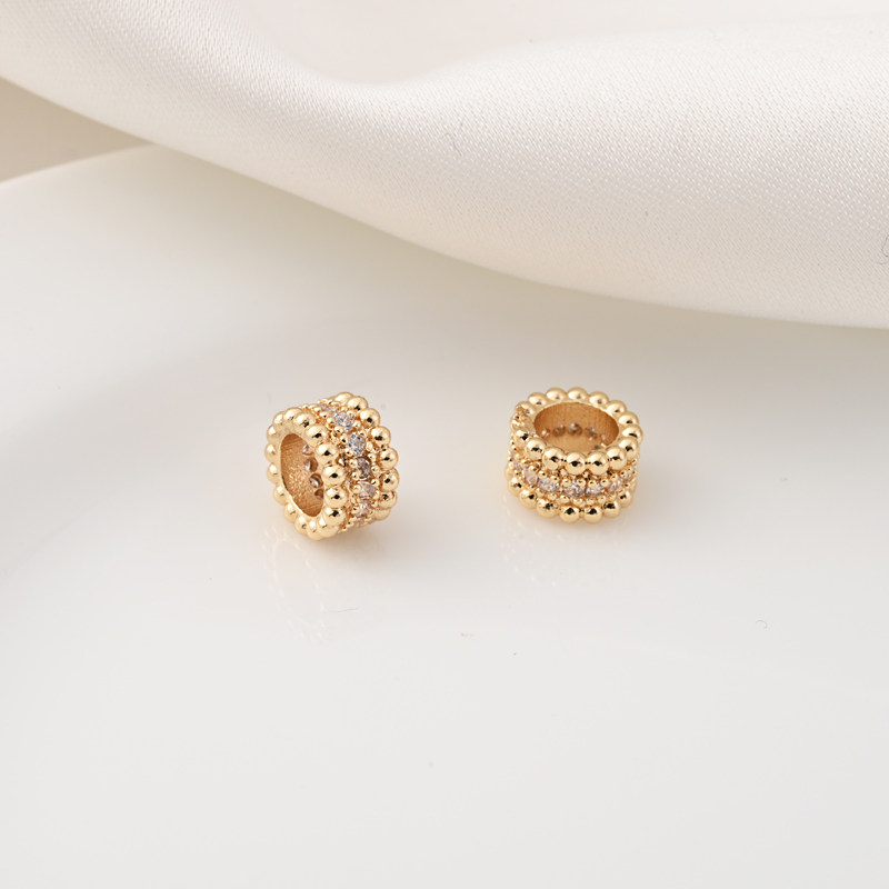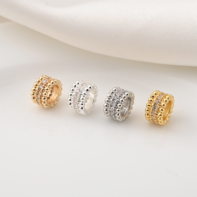 📚 铜镀14K金镶锆石8MM隔珠隔片手工diy珍珠手链跑环串珠子散珠材料