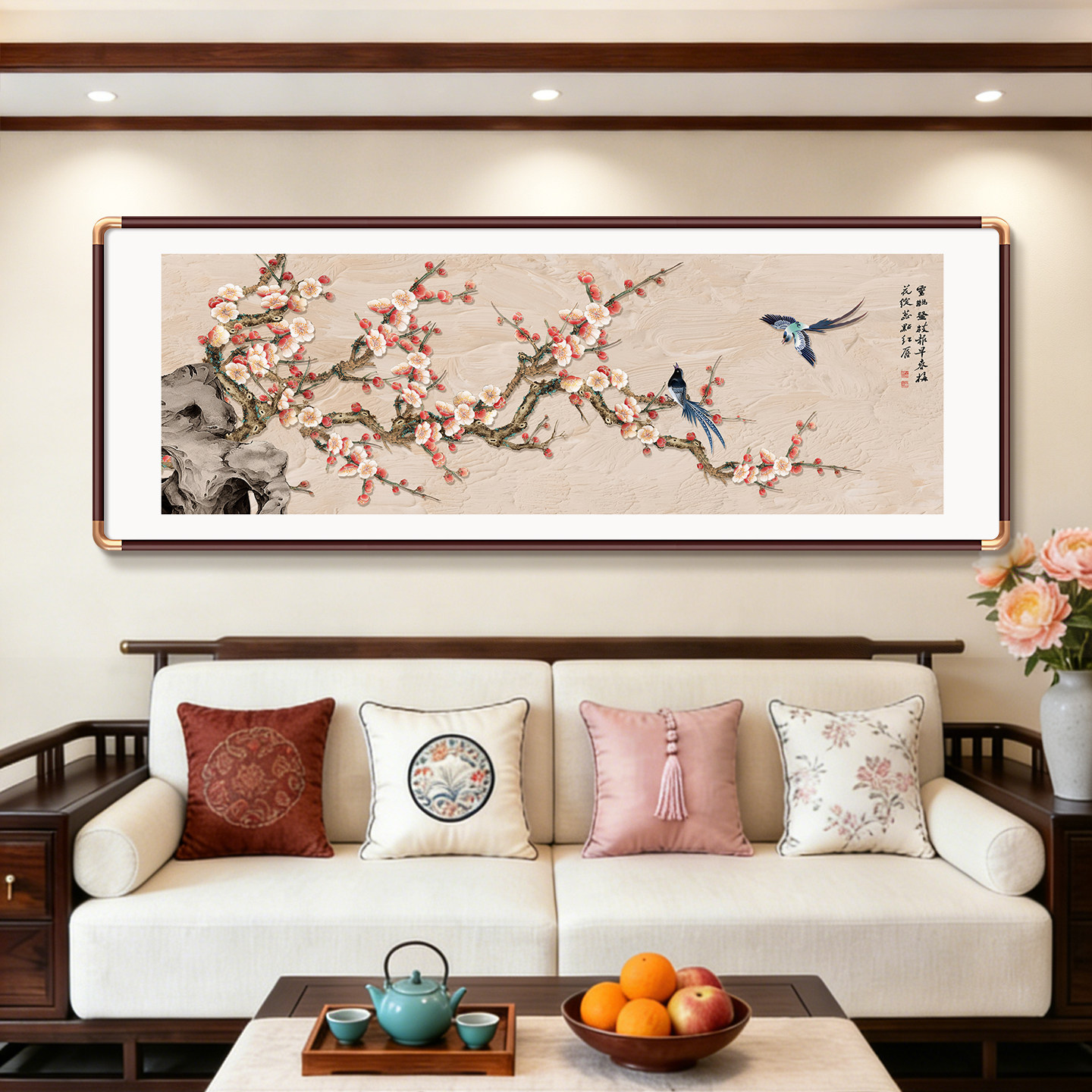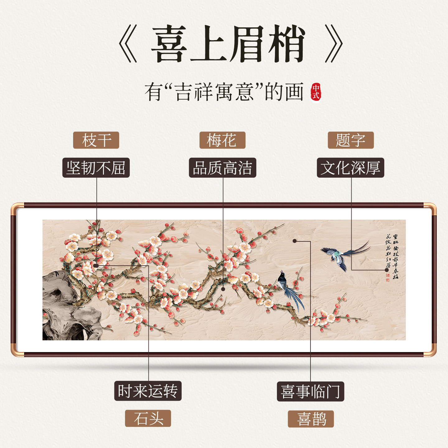 📚 喜上眉梢客厅装饰画新中式沙发背景墙挂画横版床头画卧室花鸟壁画