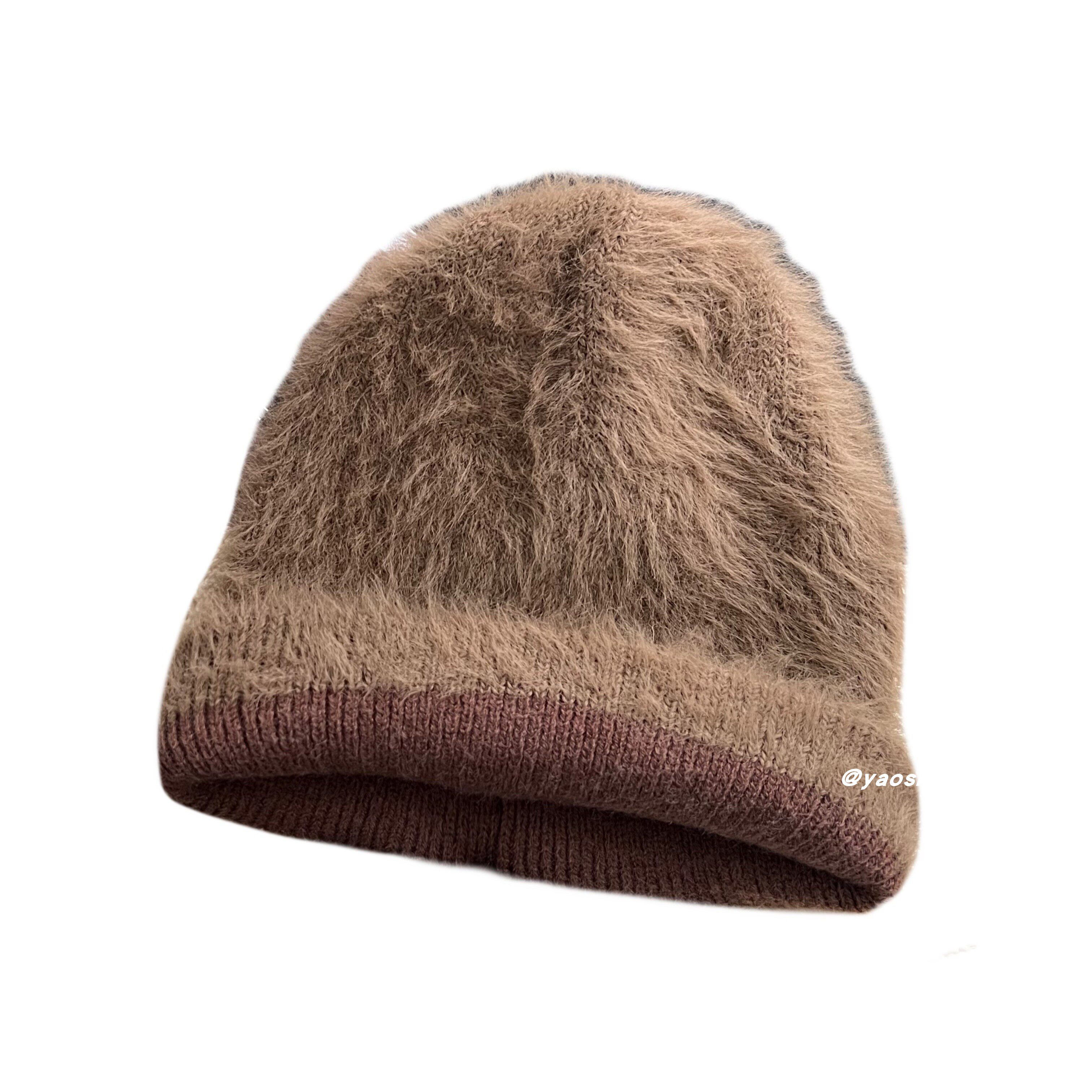 📚 融化你的心~秋冬百搭柔软舒适仿貂绒双层针织堆堆帽子护耳毛线帽
