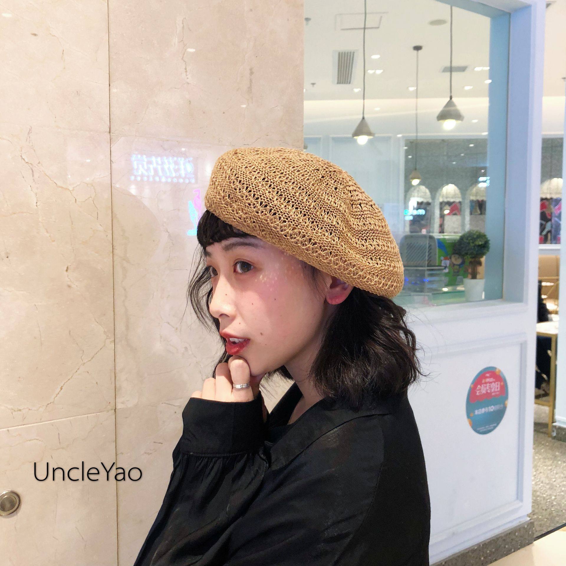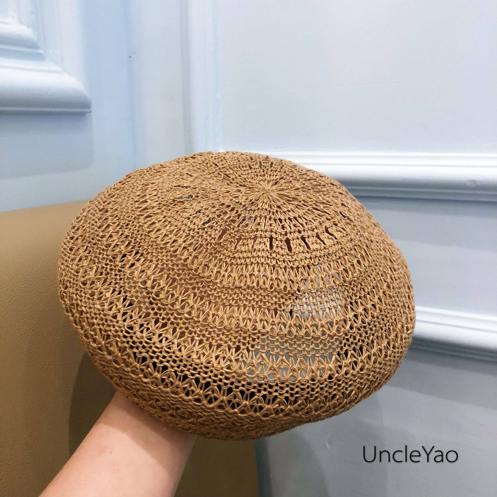 📚 姚叔叔/戴上可以俘获男神芳心的透气镂空草编贝雷帽南瓜帽子女夏