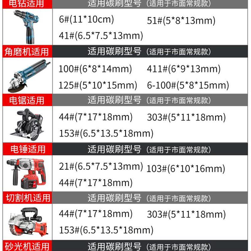📚 切割机冲击钻打磨机电机碳刷炭刷通用耐磨电锯手电钻手磨机各种型