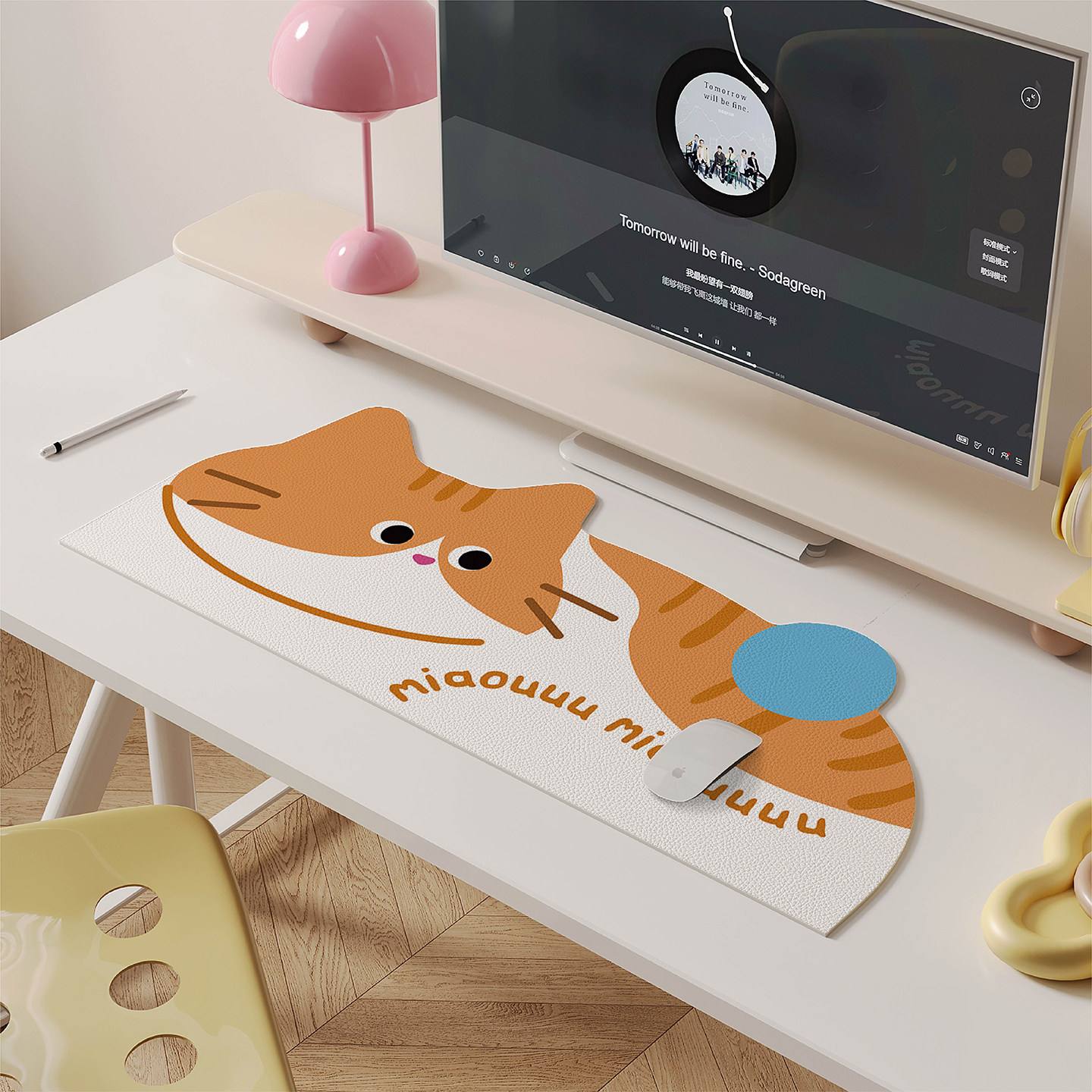 📚 可爱卡通风橘猫超大号鼠标垫家用女生高颜值办公工位防水防油桌垫