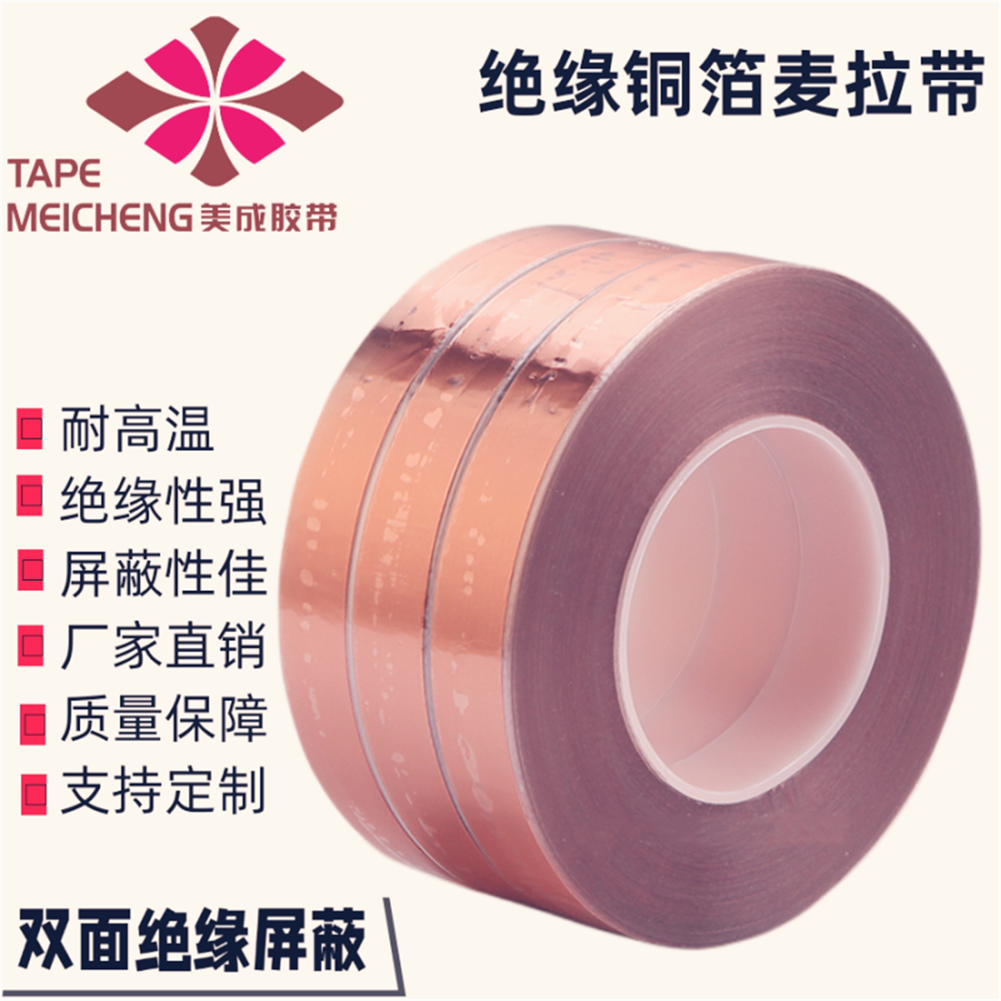 📚 双面绝缘铜箔麦拉胶带双面绝缘双面屏蔽抗干扰变压器高温包扎缠绕