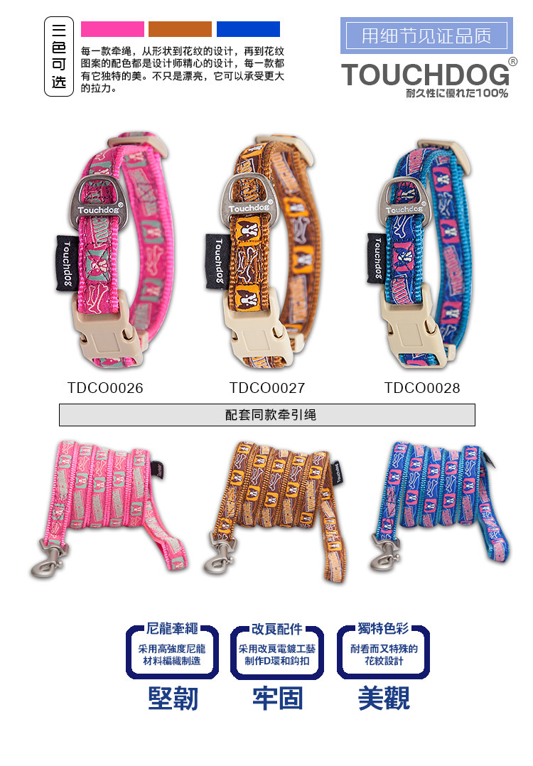 📚 清货Touchdog它它狗狗牵引绳脖圈小型犬泰迪狗链子项圈遛狗绳宠物