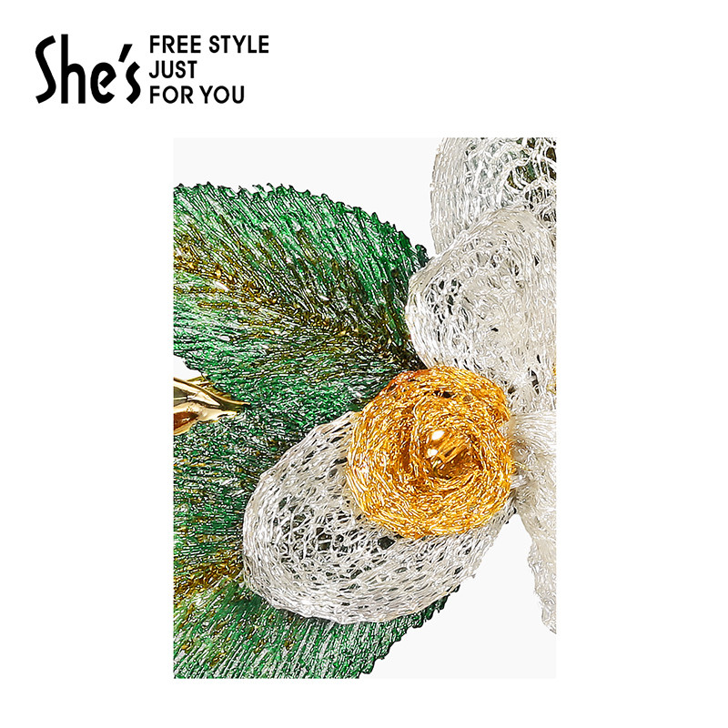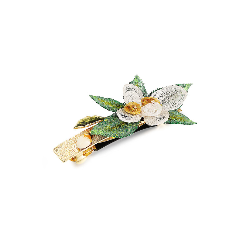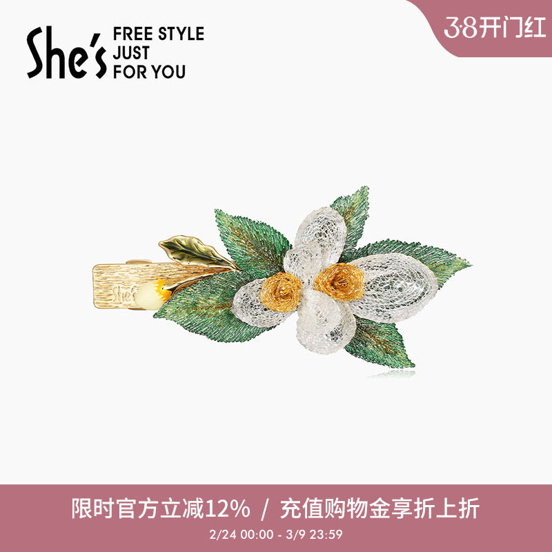 📚 shes茜子梵高玫瑰手工叠花金带刺绣叶片马尾横夹半发顶夹盘发夹