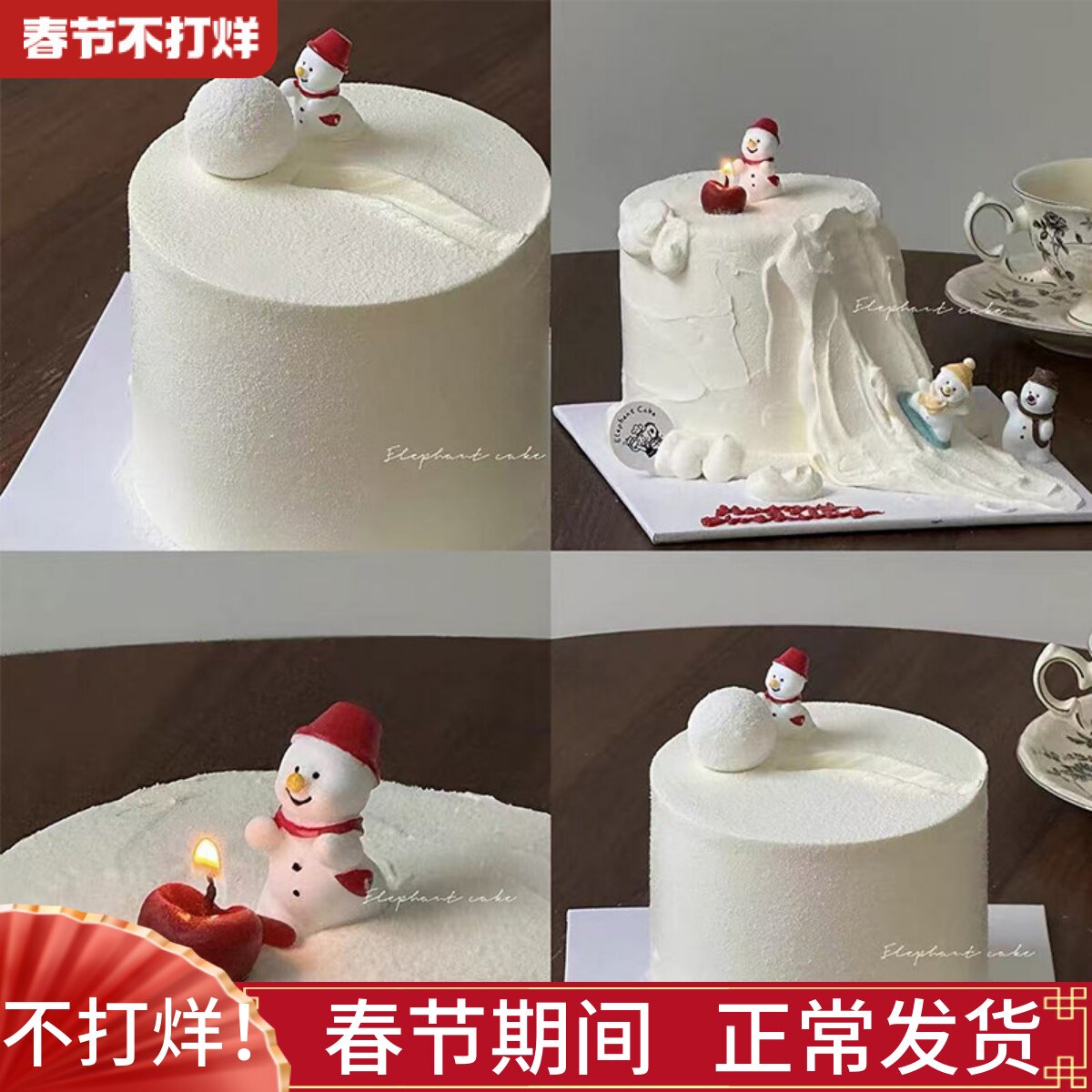 📚 网红2025冬季圣诞烂漫雪景可爱帽子滑板雪人堆雪球蛋糕装饰摆件