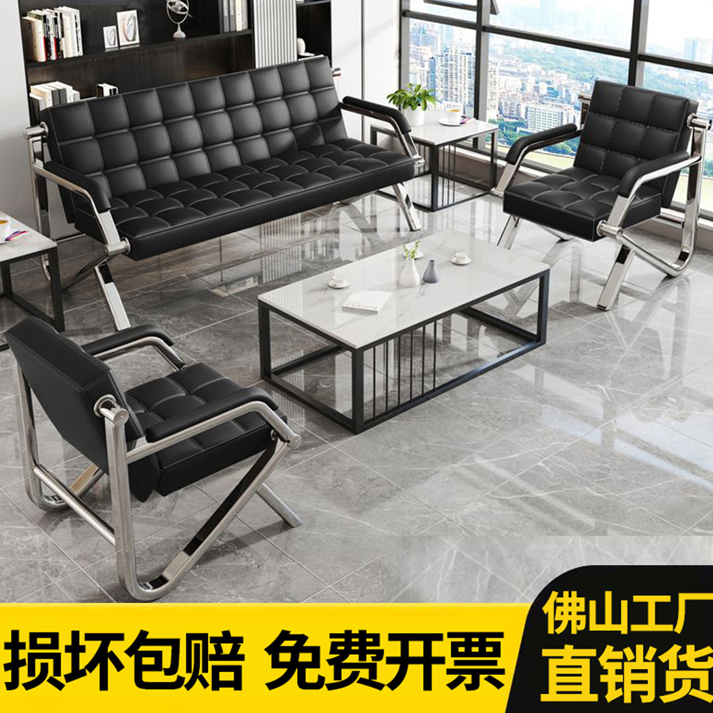 📚 接待室办公沙发茶几组合简约现代商务会客简易办公室沙发三人位
