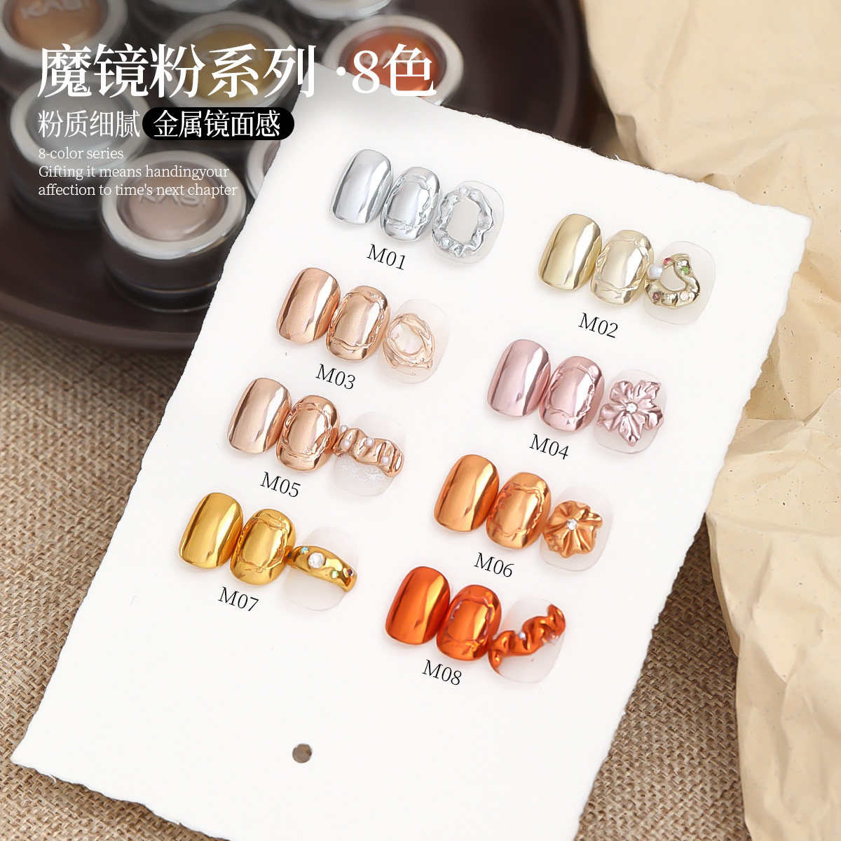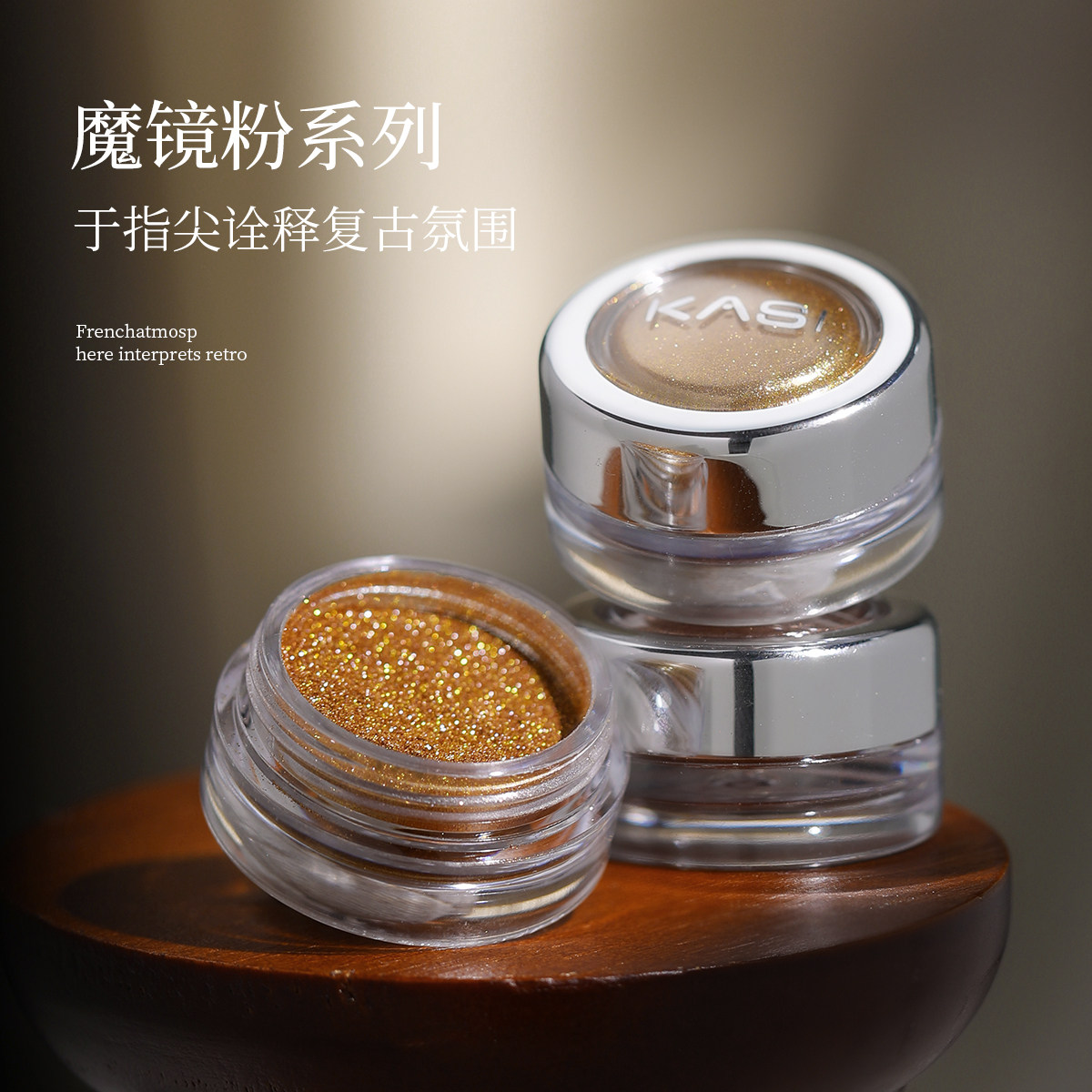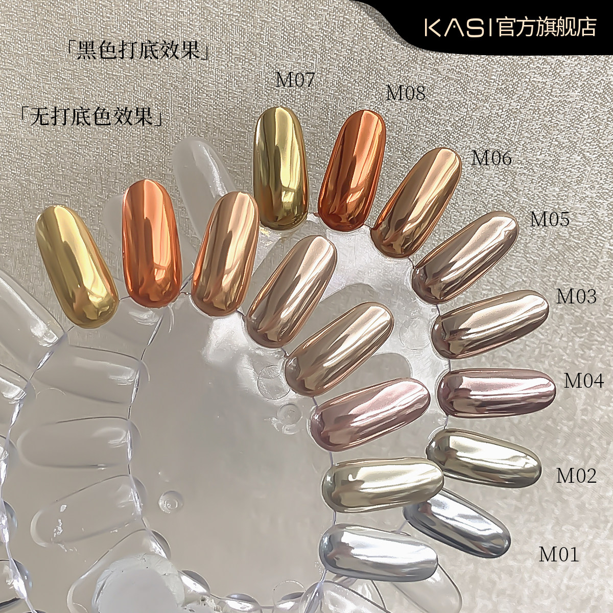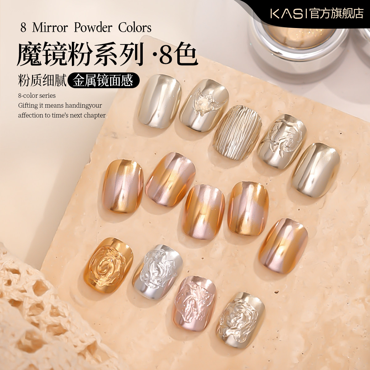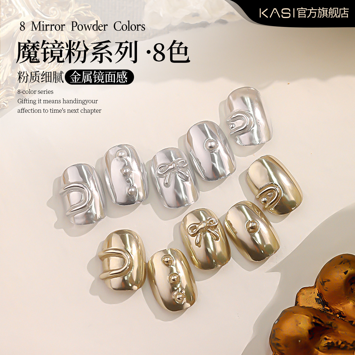 📚 KaSi魔镜粉美甲镜面高级感透亮闪粉香槟金银色固态蹭粉美甲店专用