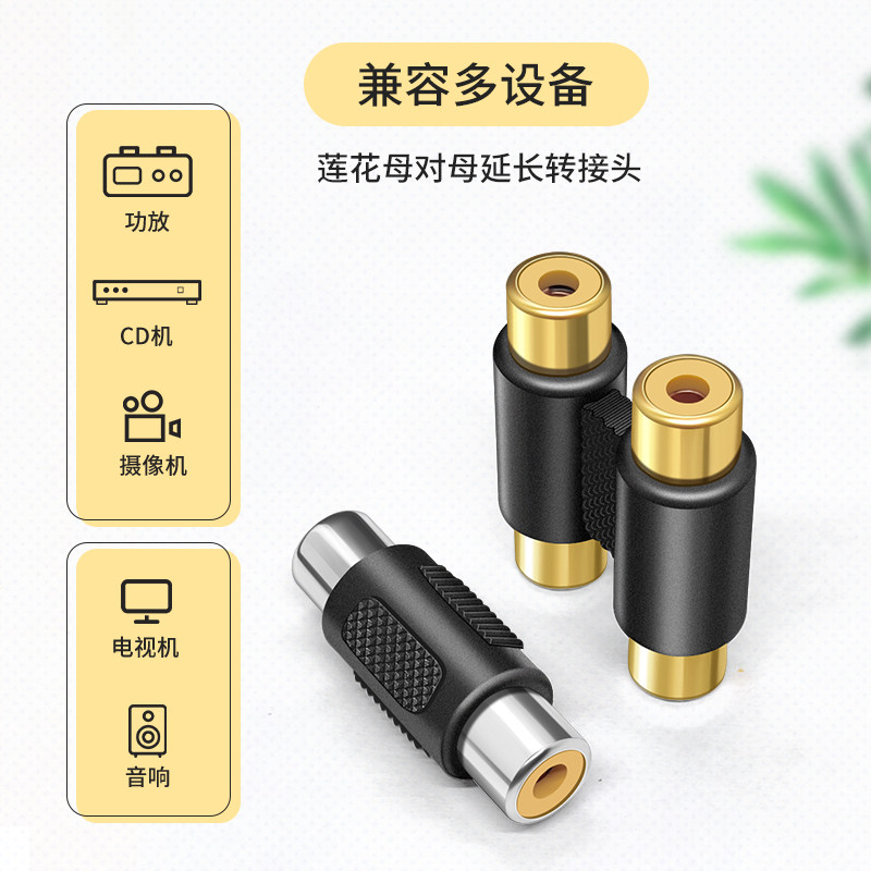 📚 rca插头延长器av功放转接头母对母rac音频线母头直通母转母口双莲花头接口对接母座音响音箱车载dsp汽车CD机