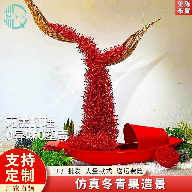 📚 现代艺术装置造景室内商场酒店仿真花假花红豆船相思豆悬挂吊饰