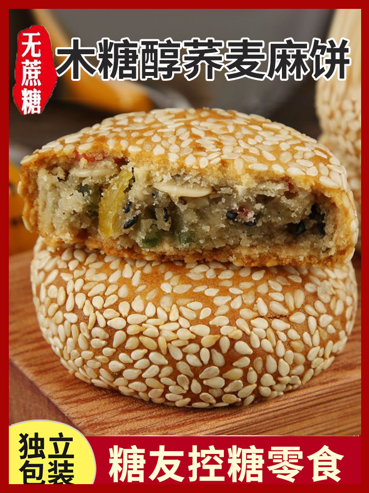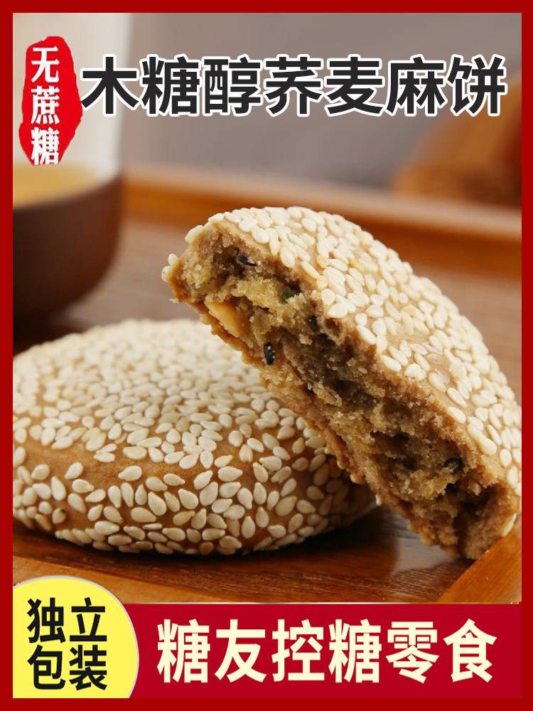 📚 无蔗糖荞麦麻饼木糖醇糖尿人解馋饱腹病友控糖专用小零食品旗舰店