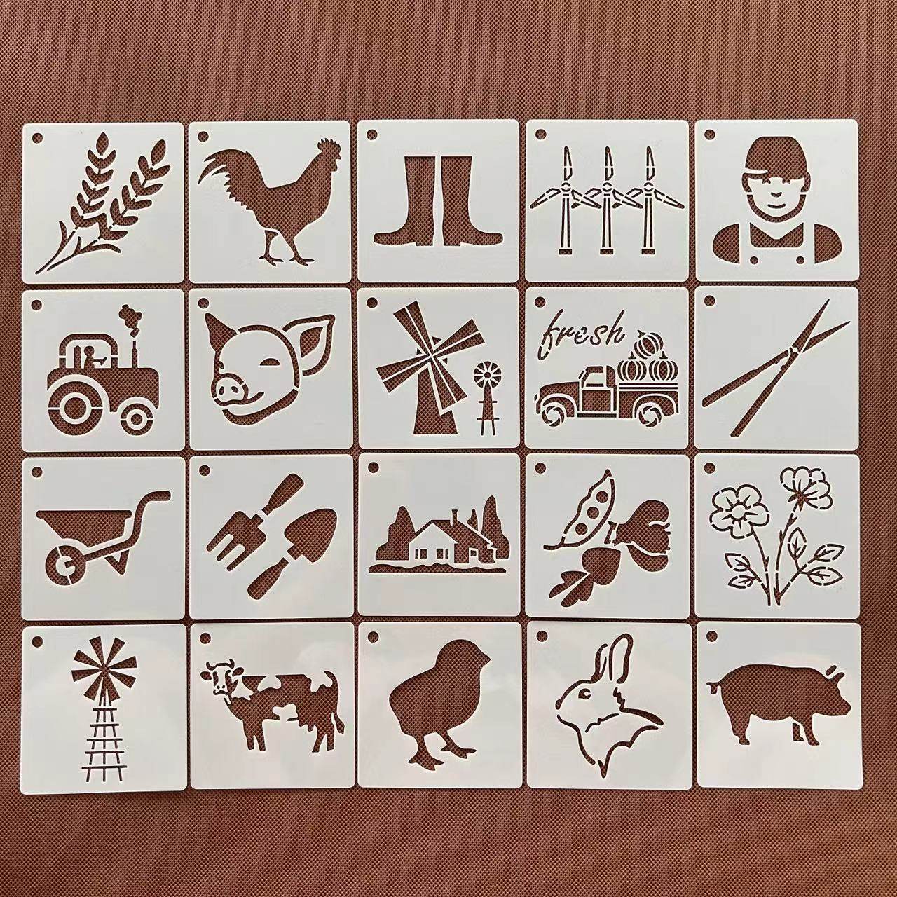 📚 农场系列画画农具手账模具镂空绘画模板卡儿童手绘涂鸦辅助工具