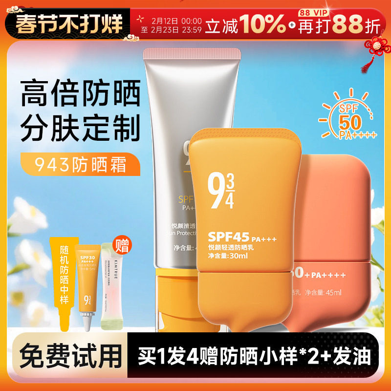 📚 943/934悦颜沁爽清透防晒霜乳防紫外线控油清爽女男防水军训专用
