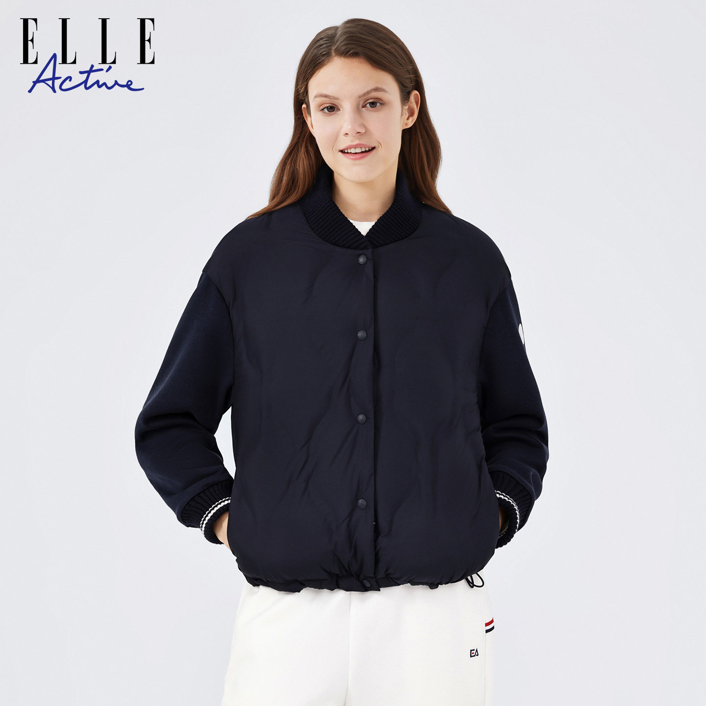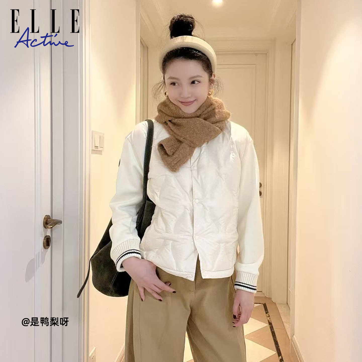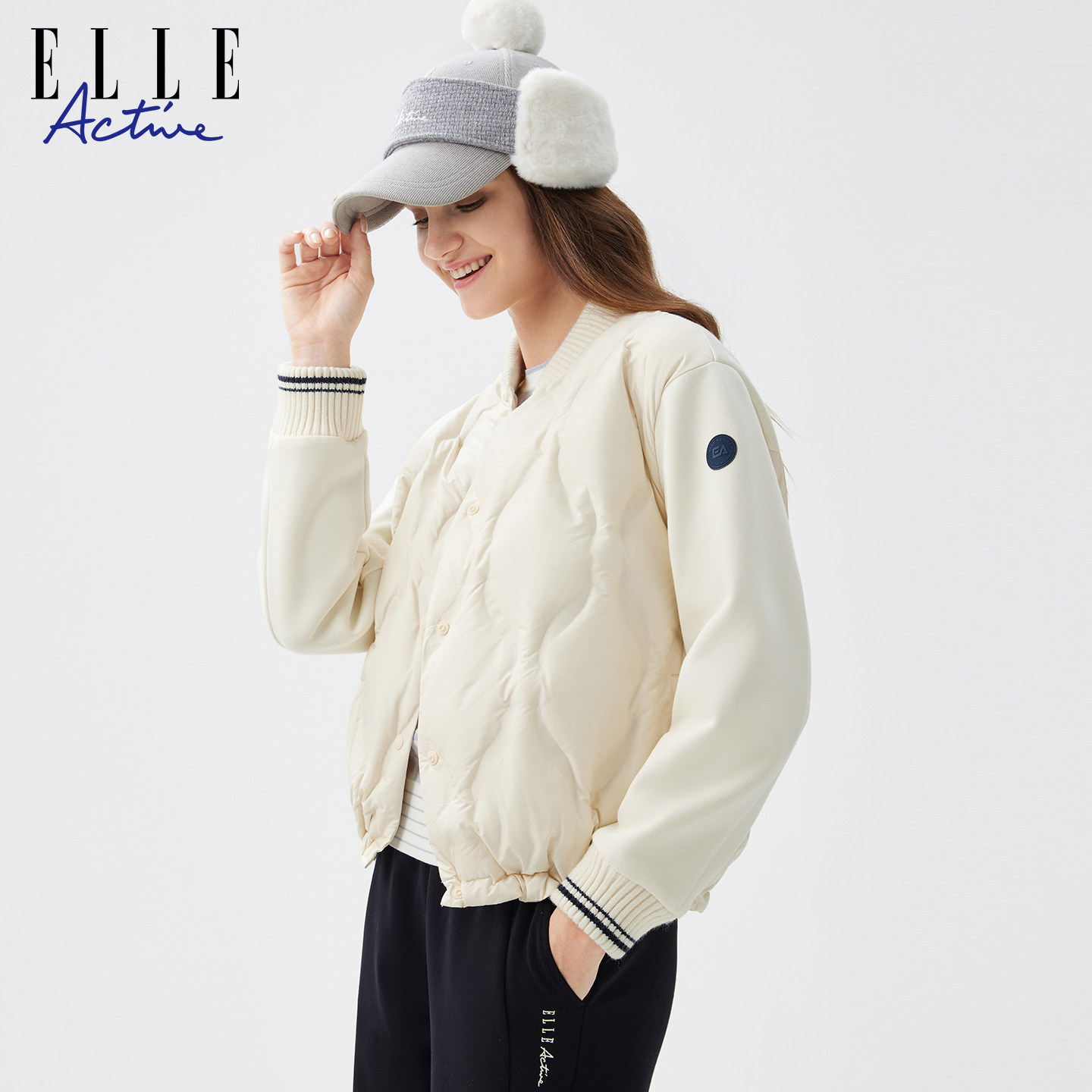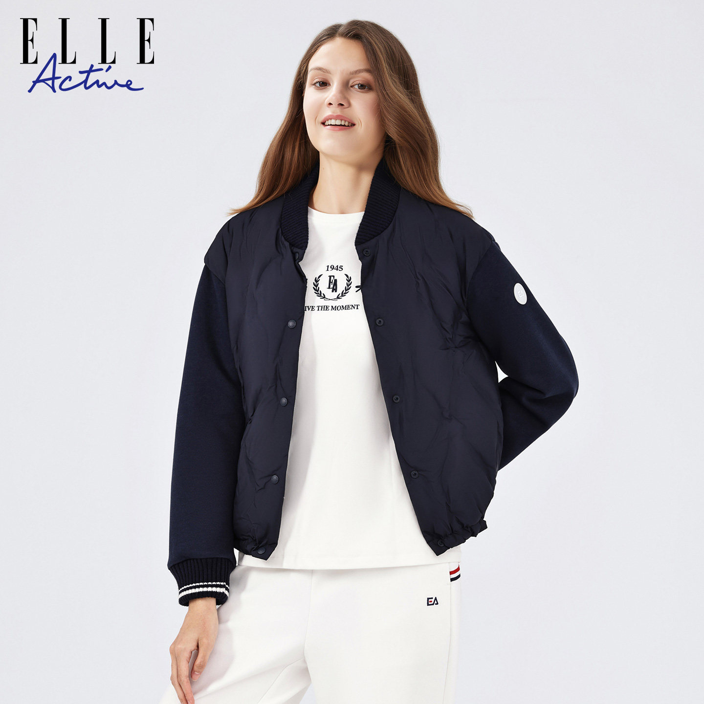 📚 ELLE Active户外潮搭棒球领羽绒服女时尚拼接轻盈保暖运动短外套