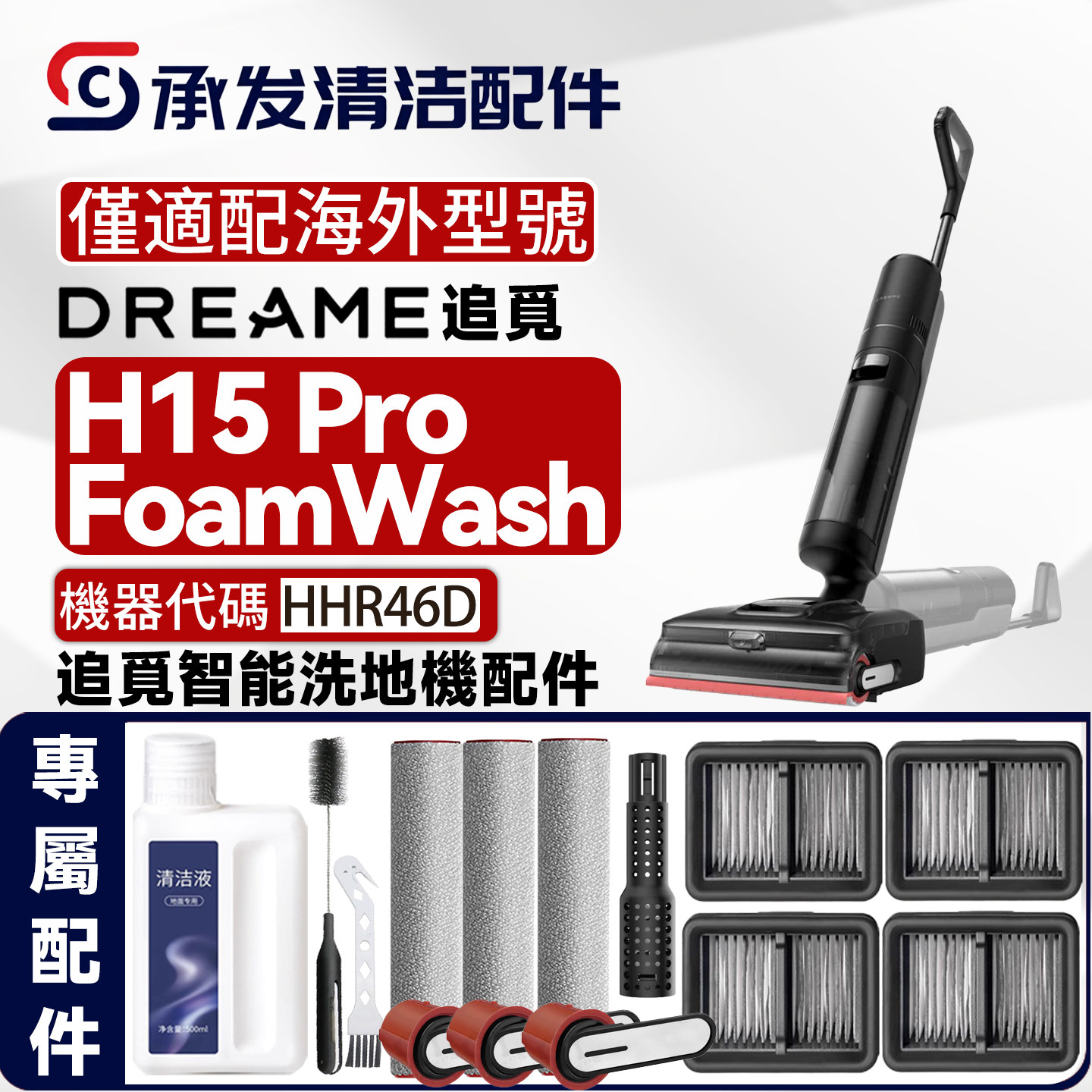 📚 适DREAME追觅H15 Pro FoamWash洗地机HHR46D配件滚筒刷滤网清洁液