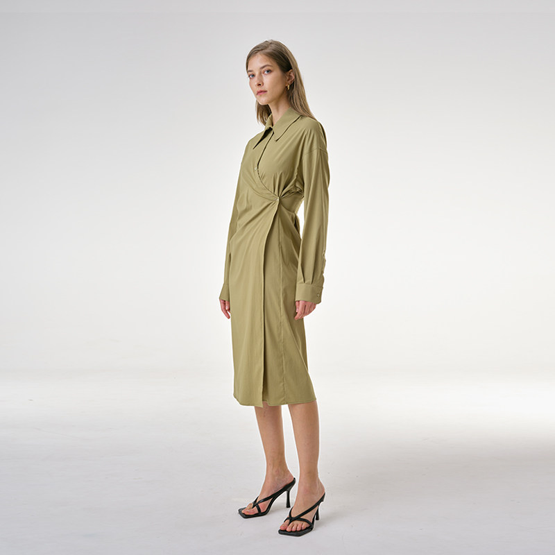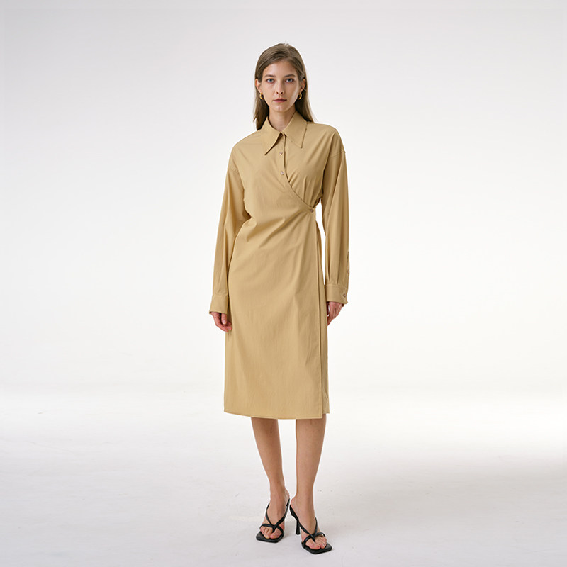 📚 【折扣】INSPIRE STORIES收腰裹裙长袖极简休闲衬衫连衣裙