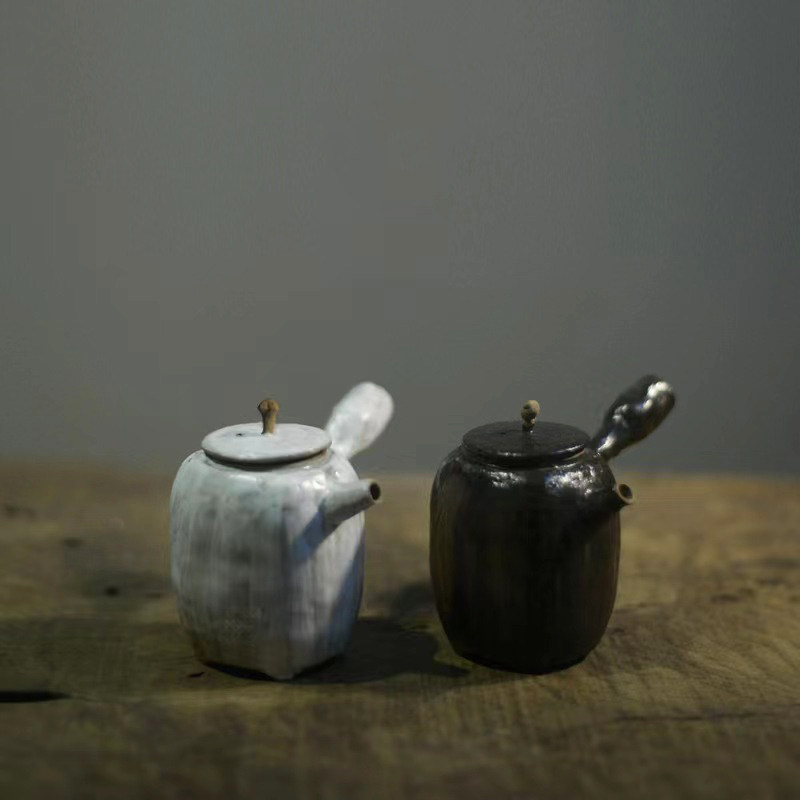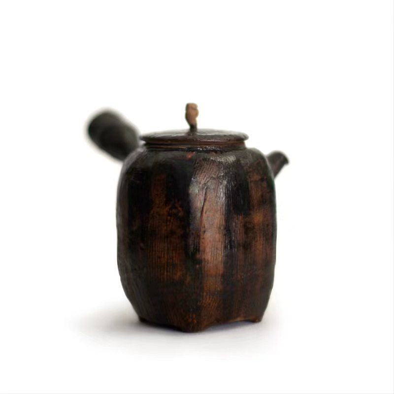 📚 古风手工粗陶侧把壶功夫茶具套装创意泡茶壶复古陶瓷日式急须壶