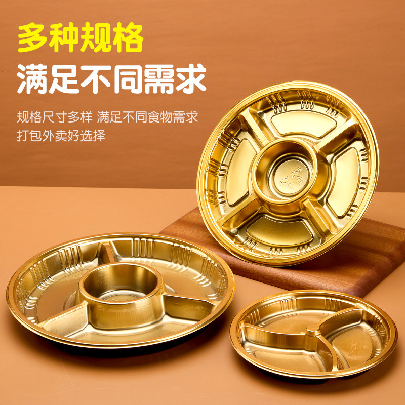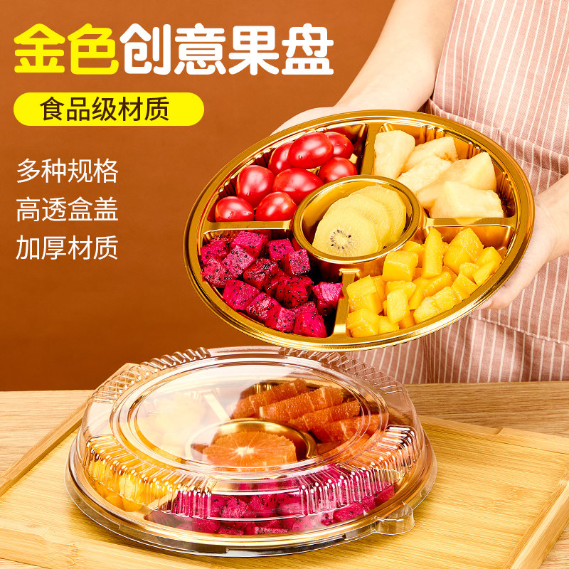 📚 金色果切打包盒 一次性餐盘分格水果盘五格四格果盘创意拼盘盒子