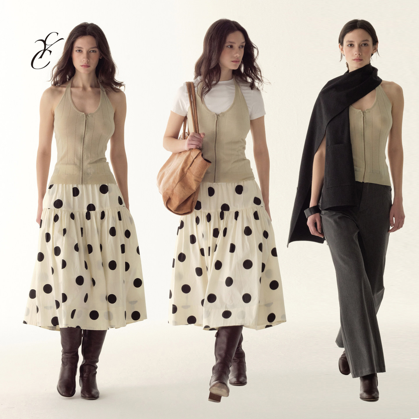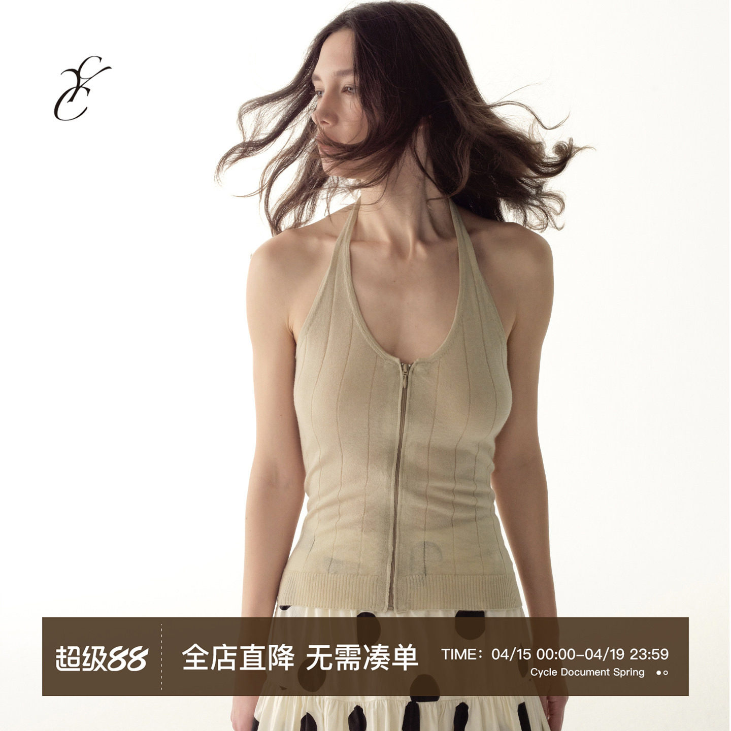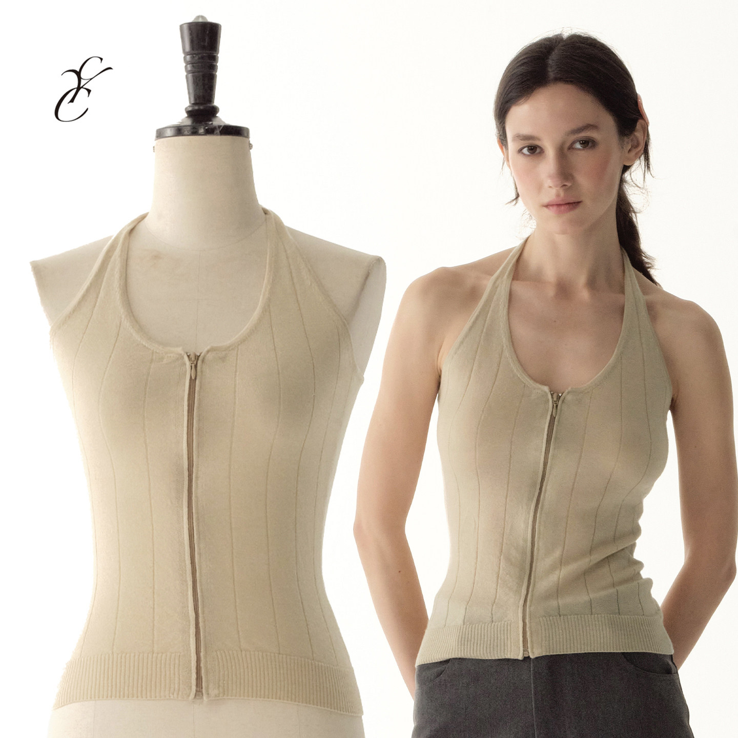 📚 Cycle Document 羊毛混纺/复古肌理感拉链毛织修身挂脖吊带背心女