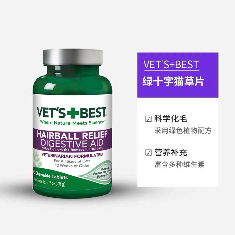 📚 【自营】绿十字猫草片化毛膏猫咪植物毛球片60片植物化毛球猫草片