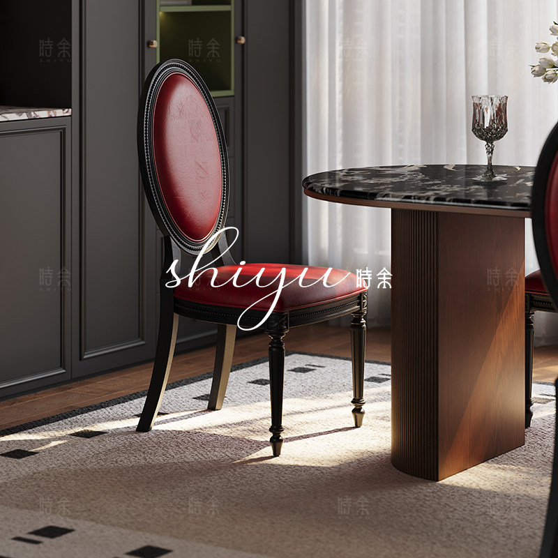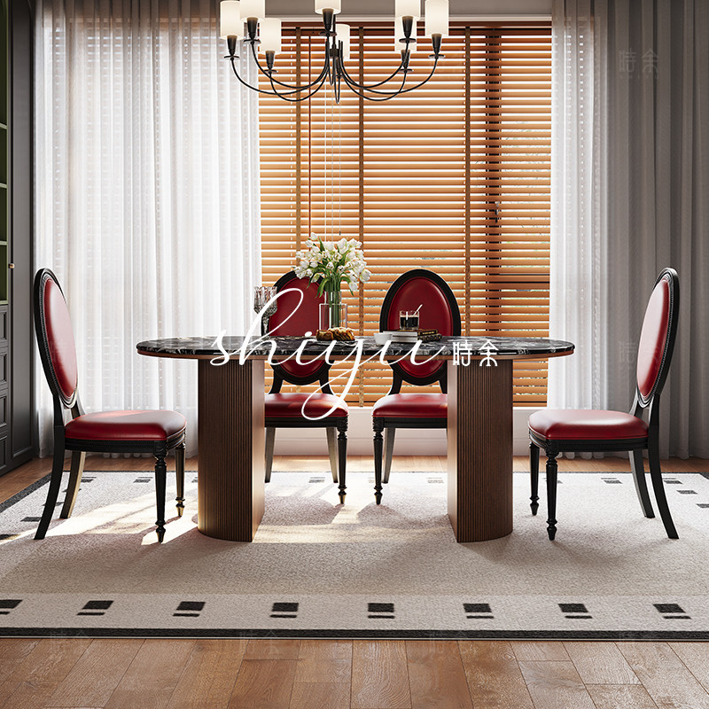 📚 时余珀尔修斯法式奢石中古风餐桌椅组合椭圆形美式大理石实木餐桌