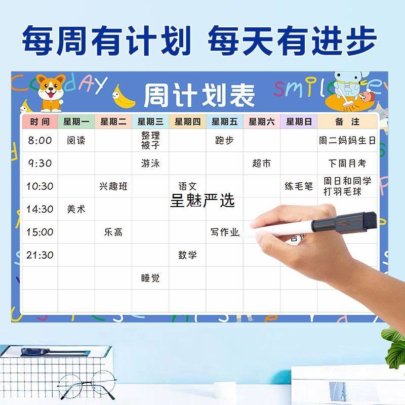 📚 每周计划表墙贴日程管理学习自律表寒假儿童作息时间表课程表磁性