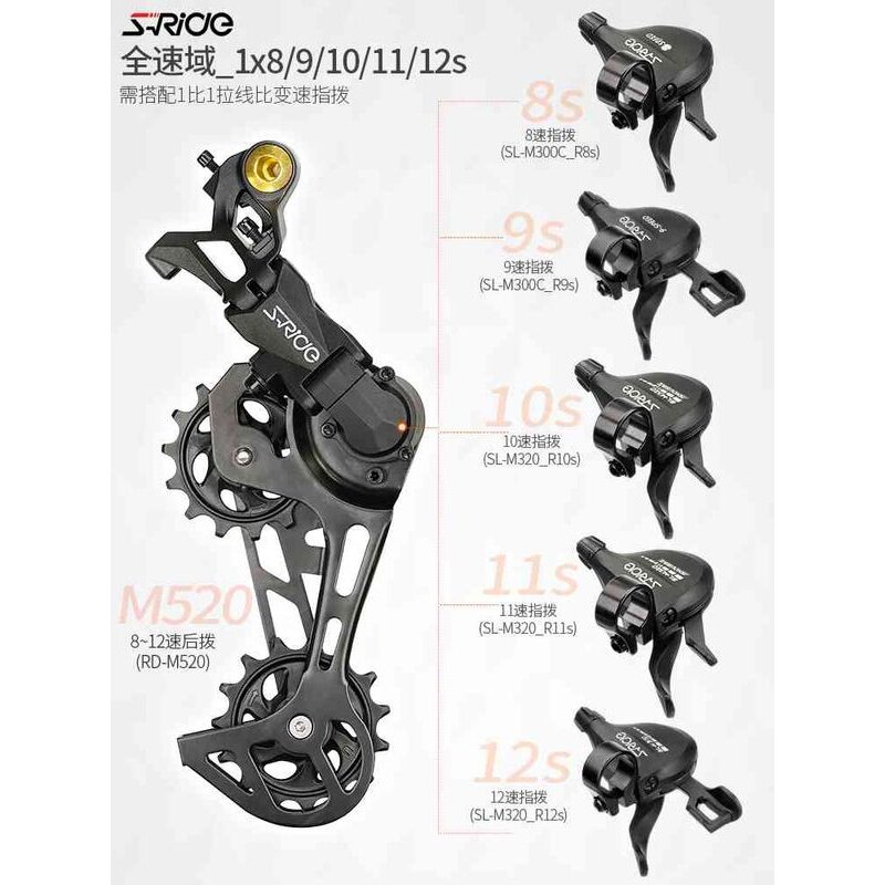 📚 速瑞达M520山地自行车后拨大鸡腿8单盘9套件10 11 12速指拨变速器