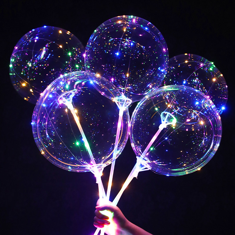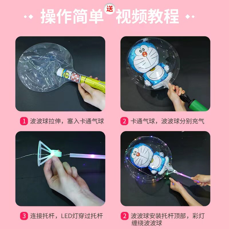 📚 网红卡通波波球透明带灯发光气球地推夜市摆摊彩灯材料包啵啵汽球