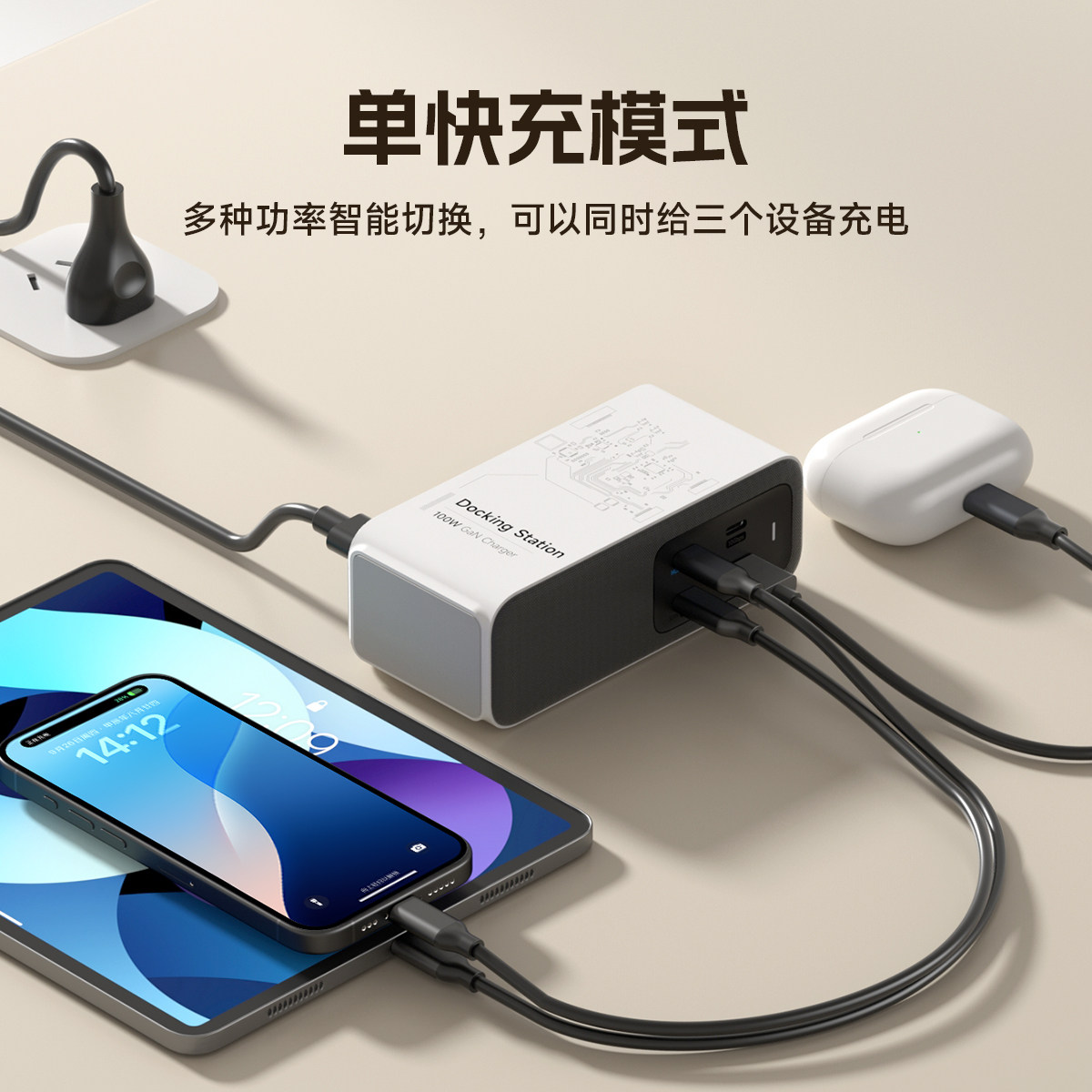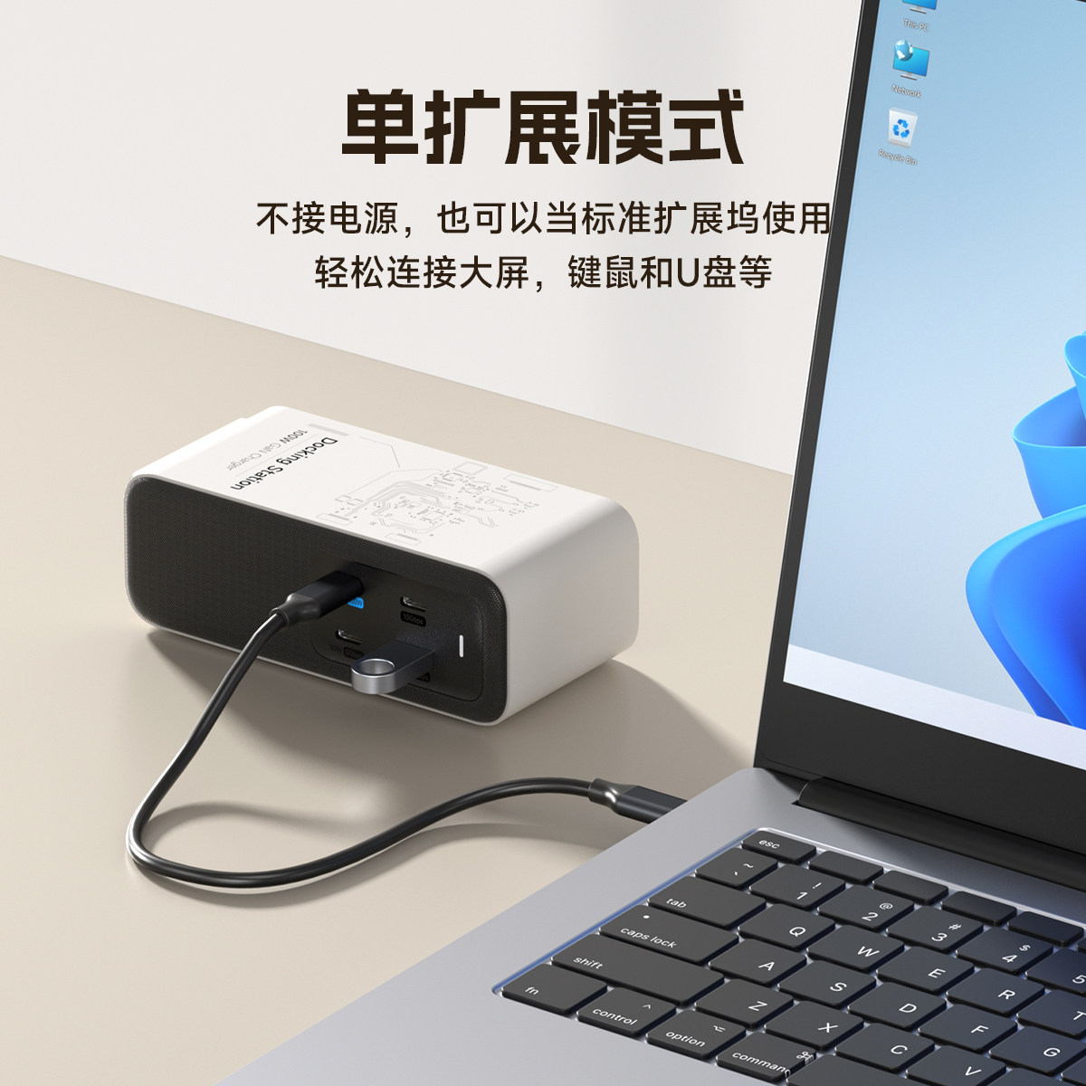 📚 海备思100W氮化镓扩展坞typec拓展桌面充电站雷电4适用switch底座ROG掌机ally充电器苹果macbook笔记本电脑