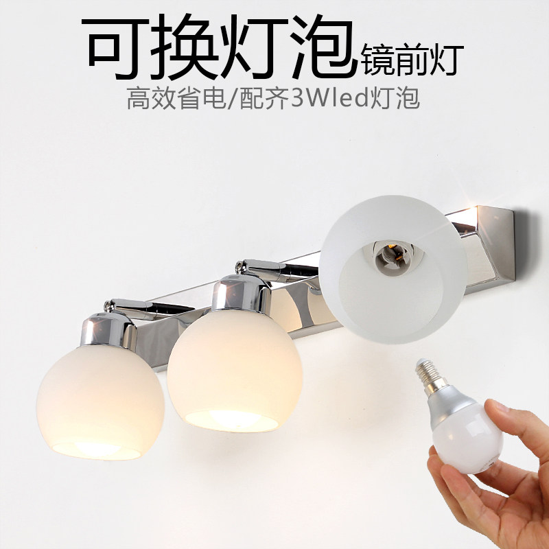 📚 北欧镜前灯卫生间浴室带开关插头可换灯泡不锈钢卧室梳妆镜子壁灯