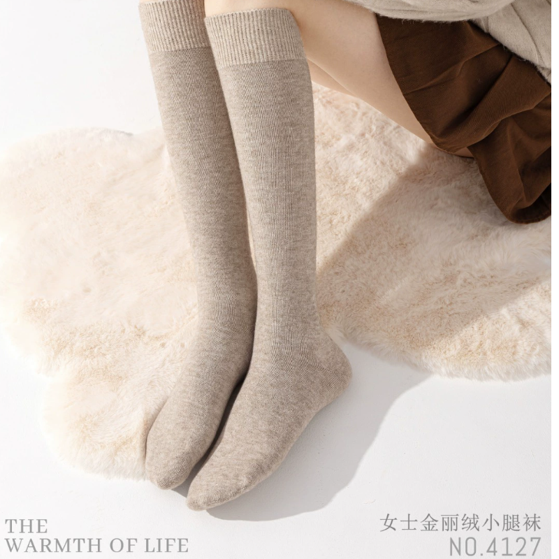 📚 木棉田秋冬金丽绒小腿女袜保暖微厚防滑袜子学院风长筒无骨4127