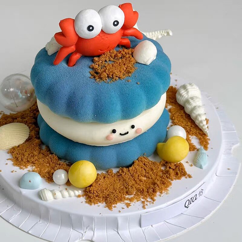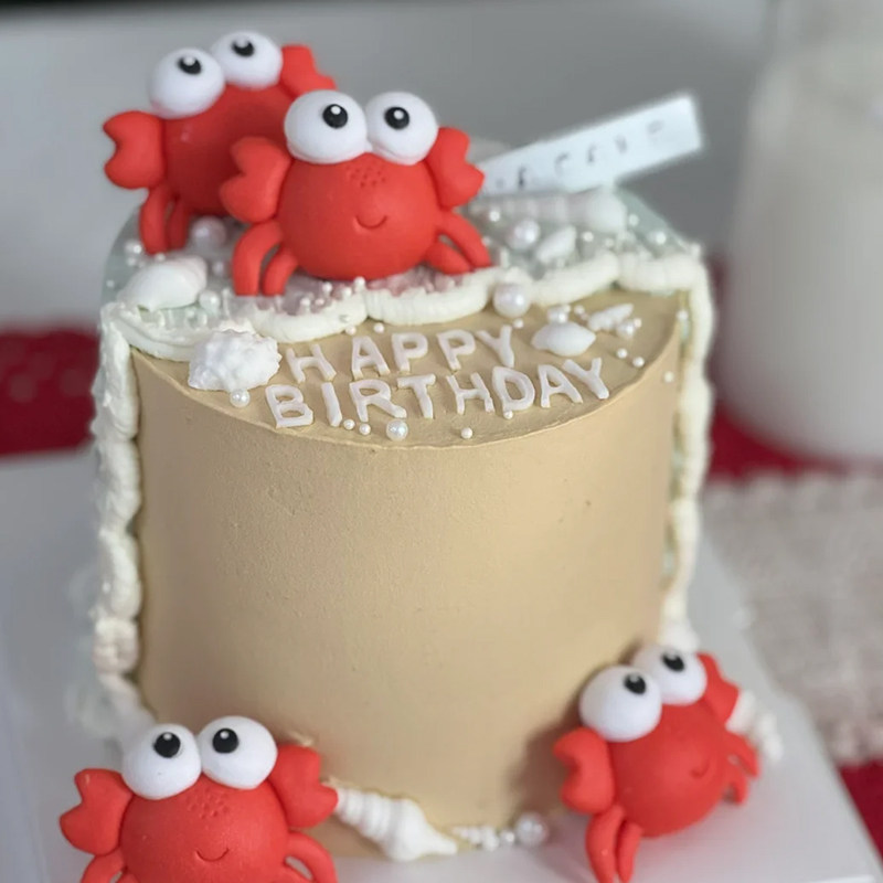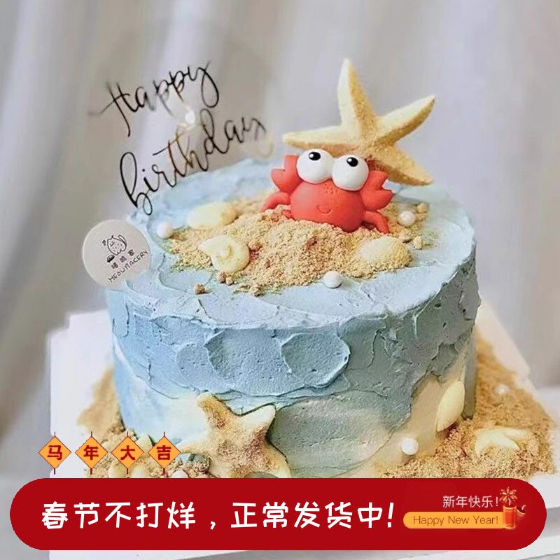 📚 巨蟹座生日蛋糕装饰摆件小螃蟹大闸蟹宝宝男孩女孩贝壳海星插件