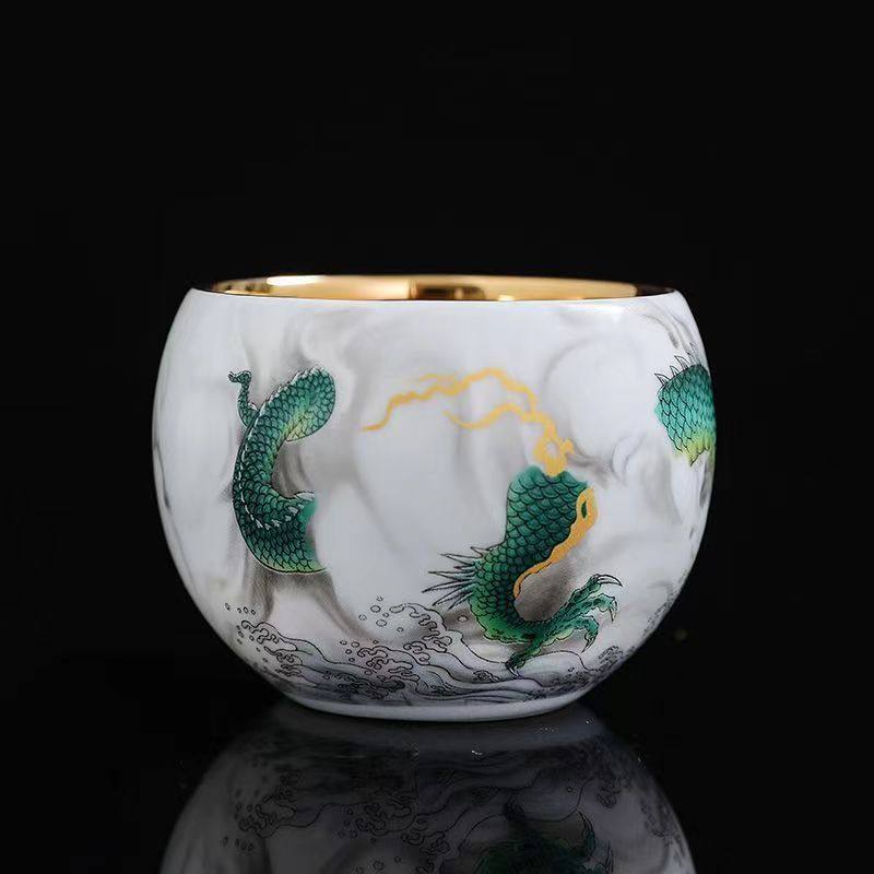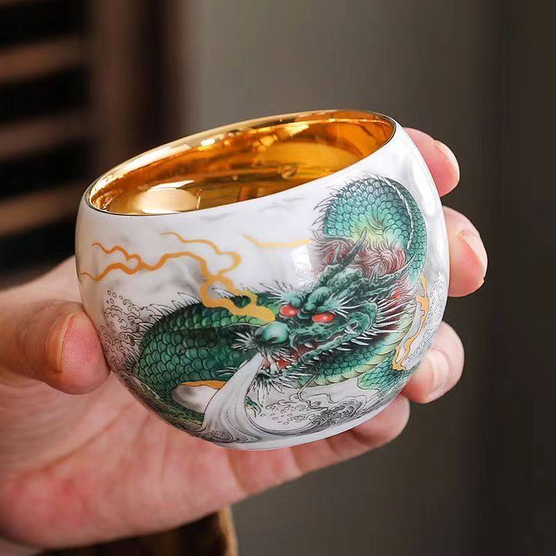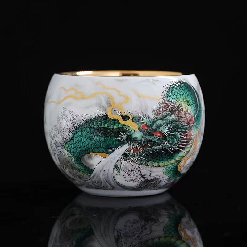 📚 周鸿杰大师手作青龙鎏金龙年送礼生肖茶杯高端主人杯家用茶具茶器