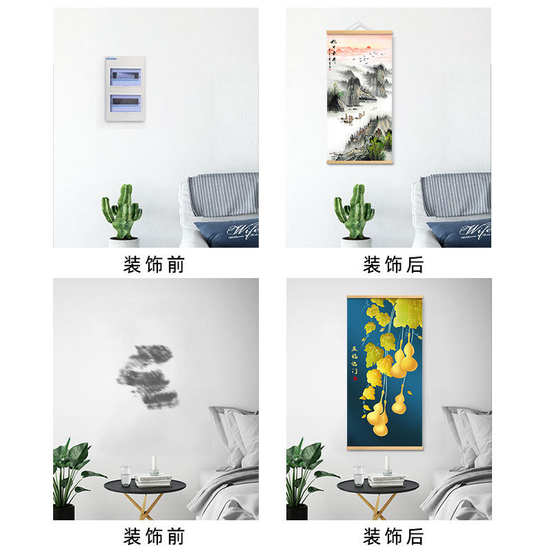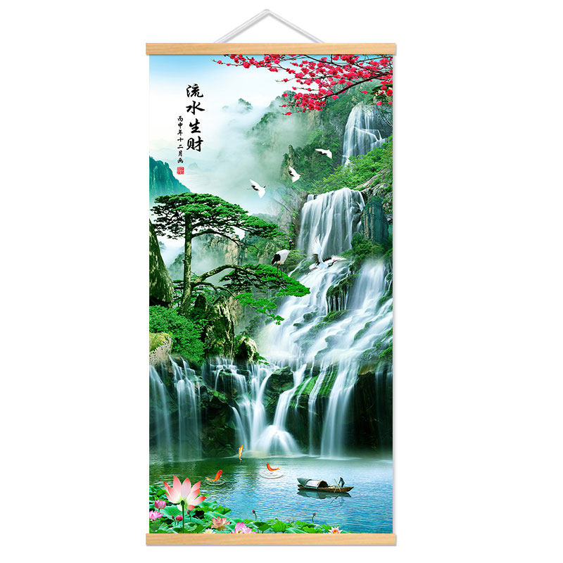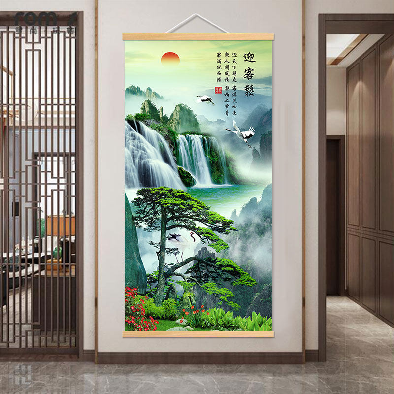 📚 新中式山水风景装饰画流水生财迎客松招财风水客厅玄关办公室挂画