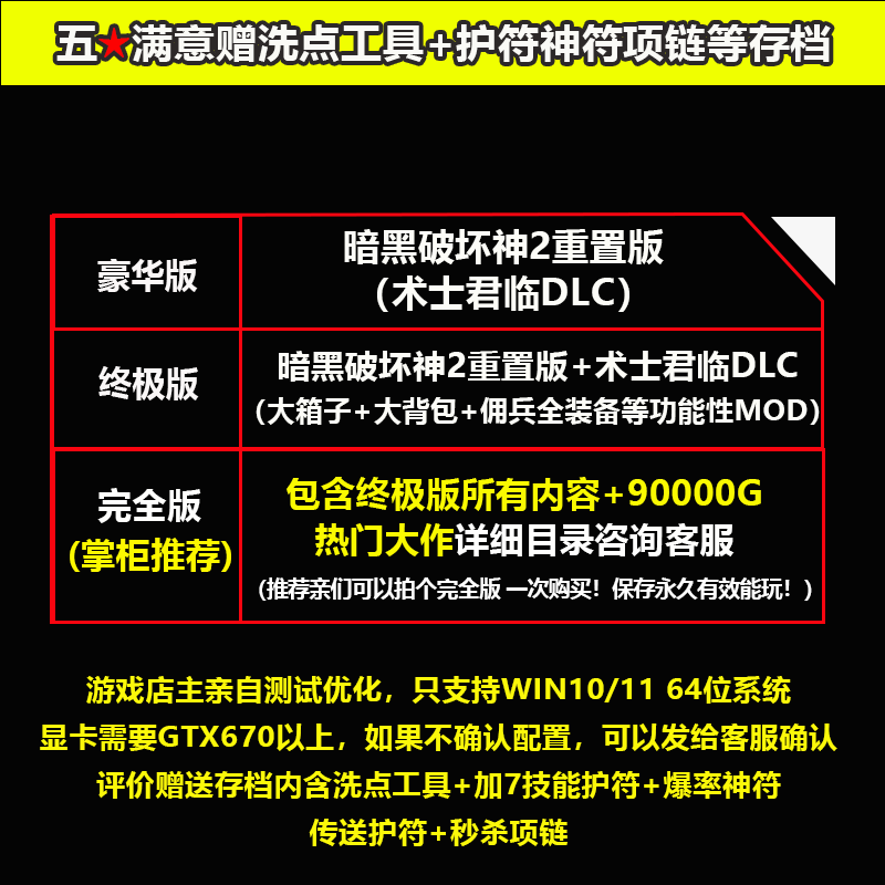 57¥ MF168 PH9aUK2SkJ7¥ https://m.tb.cn/h.7ANoTFe 暗黑破坏神2重制版术士君临全DLC中文PC游戏MOD修改器存档下载 --------------------- 【原售价】4.9元 【现售价】4.9元。