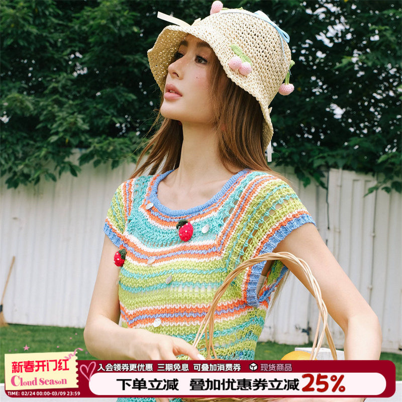 📚 CLOUDSEASON草莓彩虹针织上衣 针织短袖女2026冬季新款时尚洋气