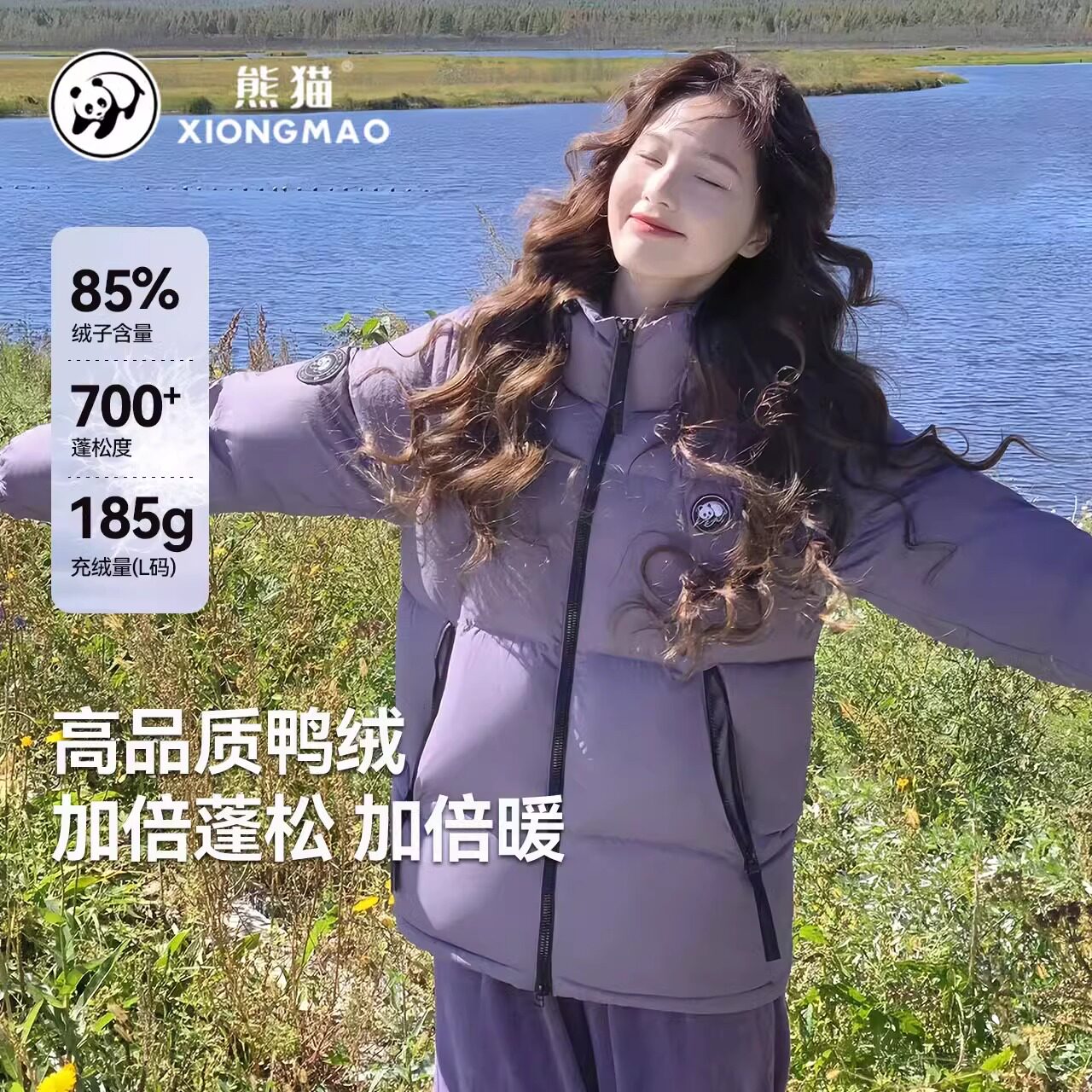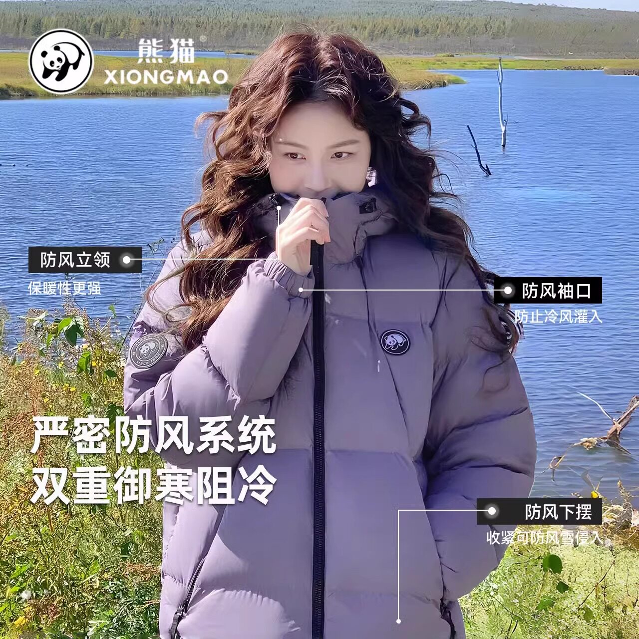 📚 暖烘烘熊猫羽绒服女冬季2024三防蓄热白鸭绒面包服外套