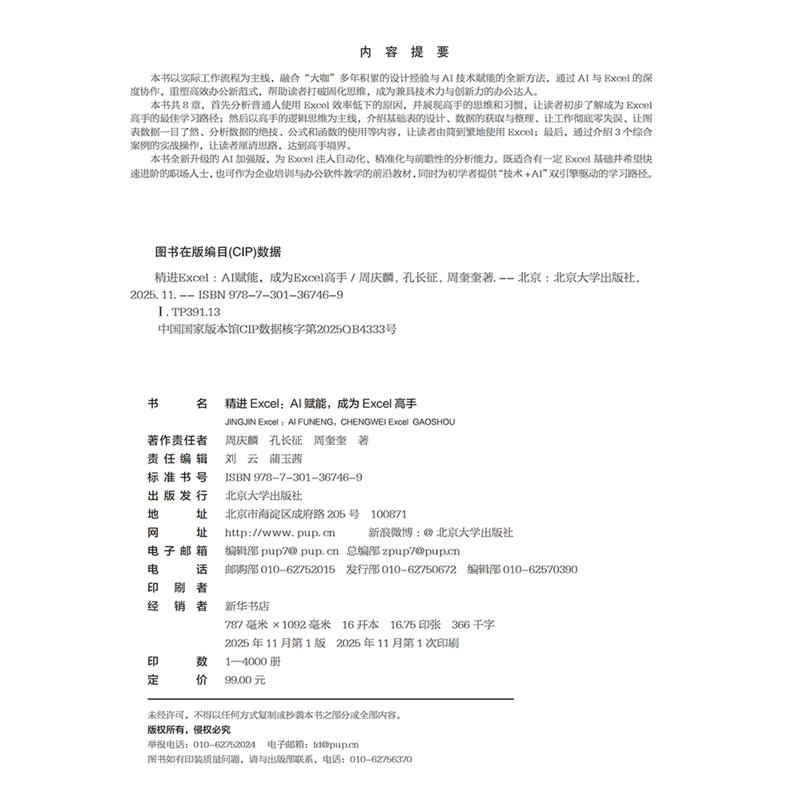 📚 精进Excel:AI赋能,成为Excel高手周庆麟,孔长征,周奎奎 著办公自动化软件(新)北京大学出版社新华书店正版