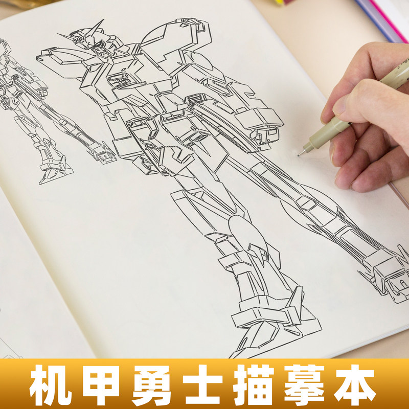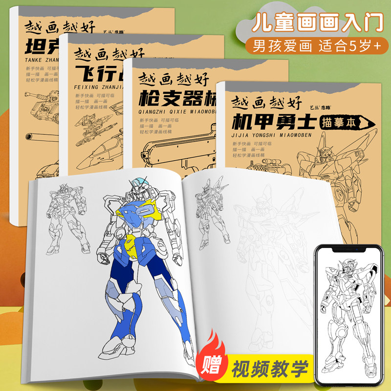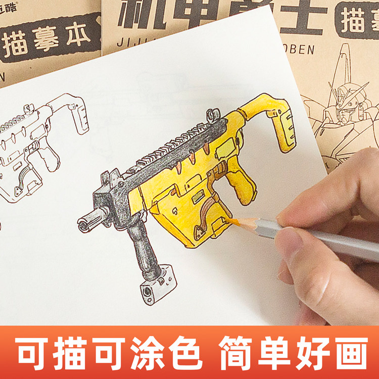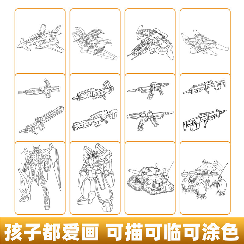 📚 机甲勇士枪支器械枪械画册描摹本坦克战车飞行战舰画画儿童涂色描绘本男孩小学生自学涂鸦临摹画册填色线稿书