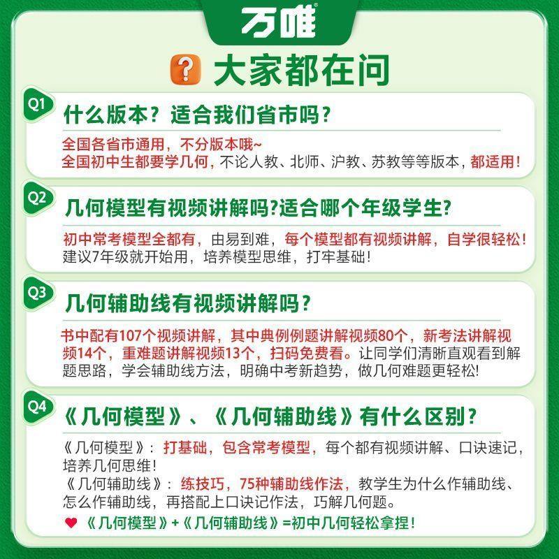 📚 2026万唯中考数学几何模型初中几何辅助线压轴题大全解题专项训练万唯教育官方旗舰店