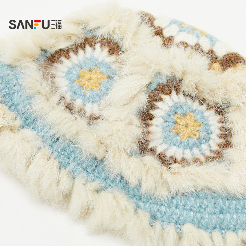 📚 三福手钩兔毛款西瓜帽 唯美个性针织保暖服饰配件帽子848639