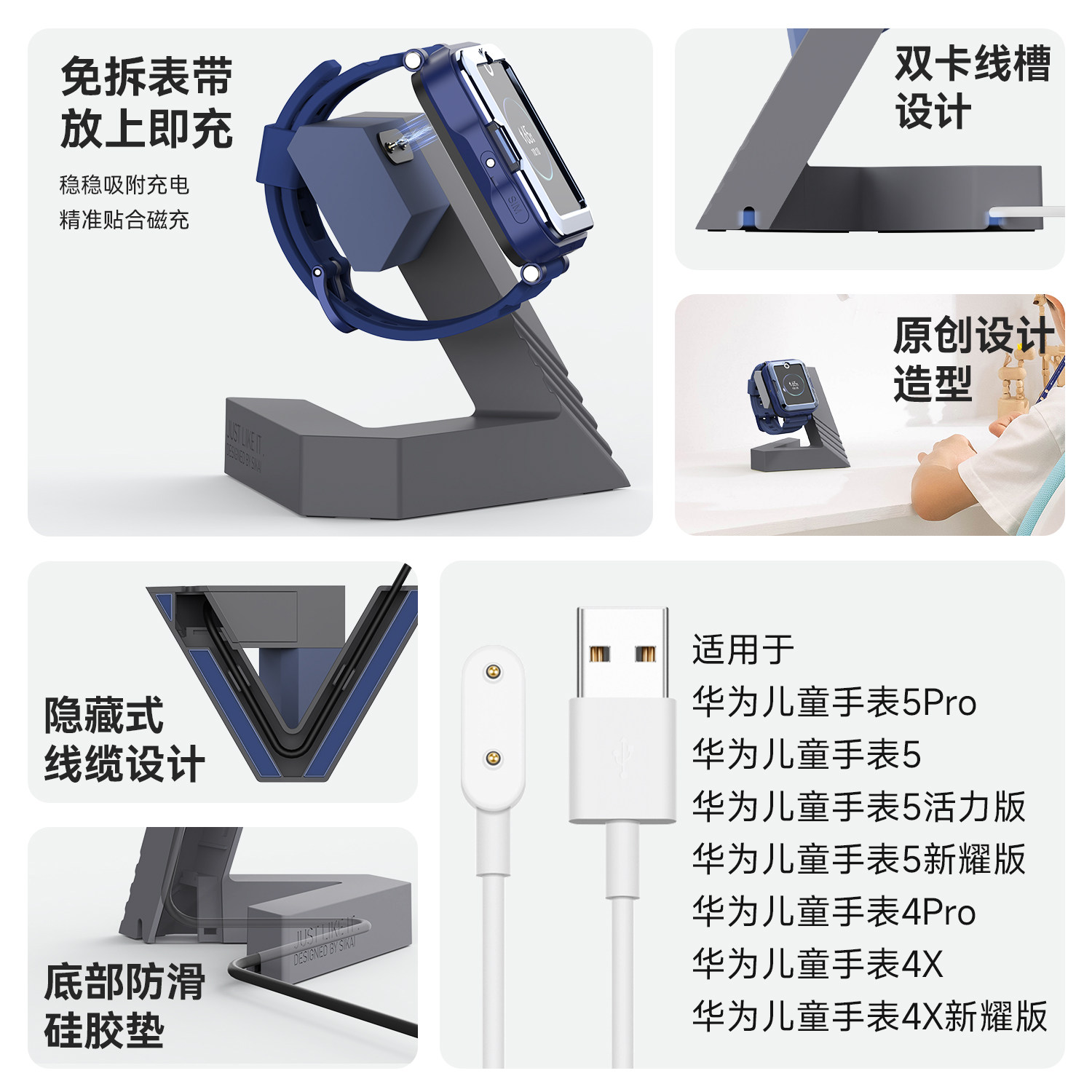 📚 适用华为儿童手表5pro充电器支架5X/4pro充电头底座新耀版活力版充电支架