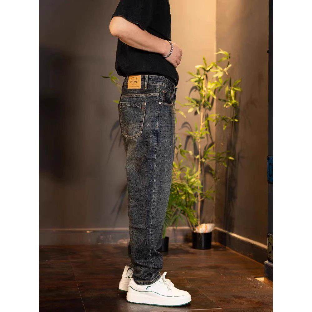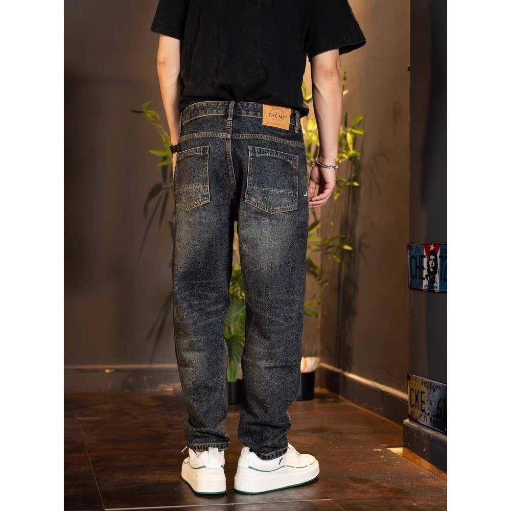📚 GM新潮 深蓝色宽松微锥牛仔裤男士秋冬新款加绒加厚简约直筒裤子