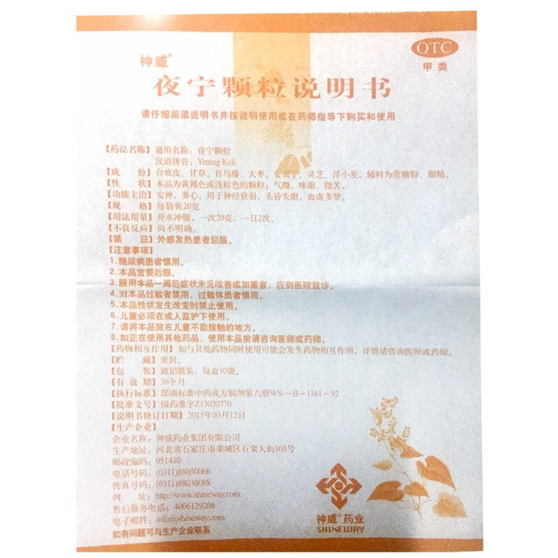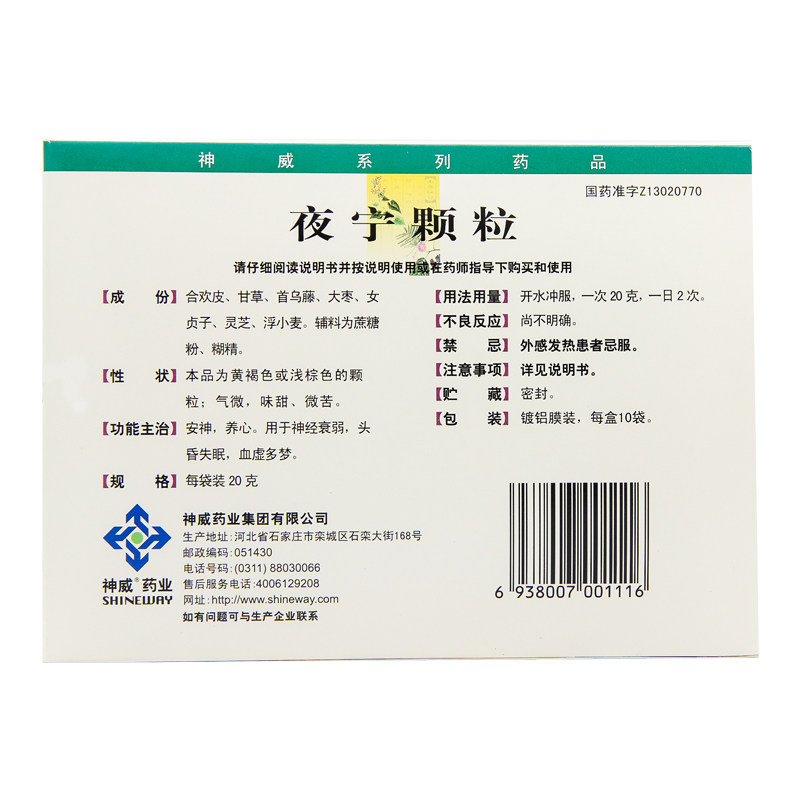 📚 神威夜宁颗粒20g*10袋/盒失眠多梦头昏血虚神经衰弱安神养心助眠