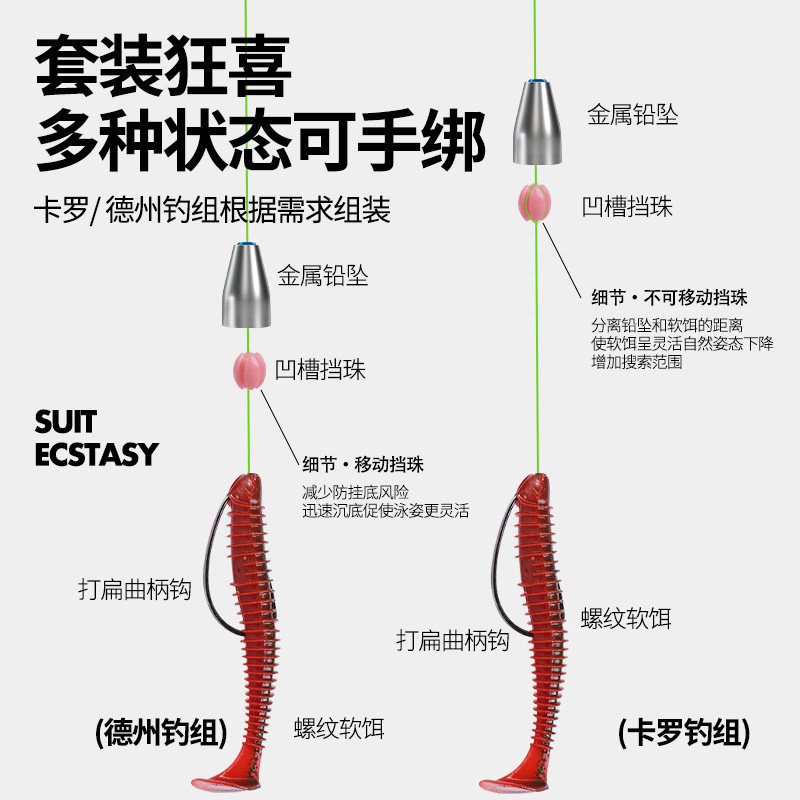📚 卡罗钓组套装卡莱罗纳钓组八字环绑好成品德州钓组鳜鱼鲈鱼软假饵