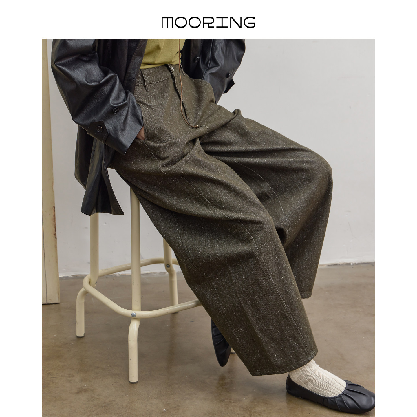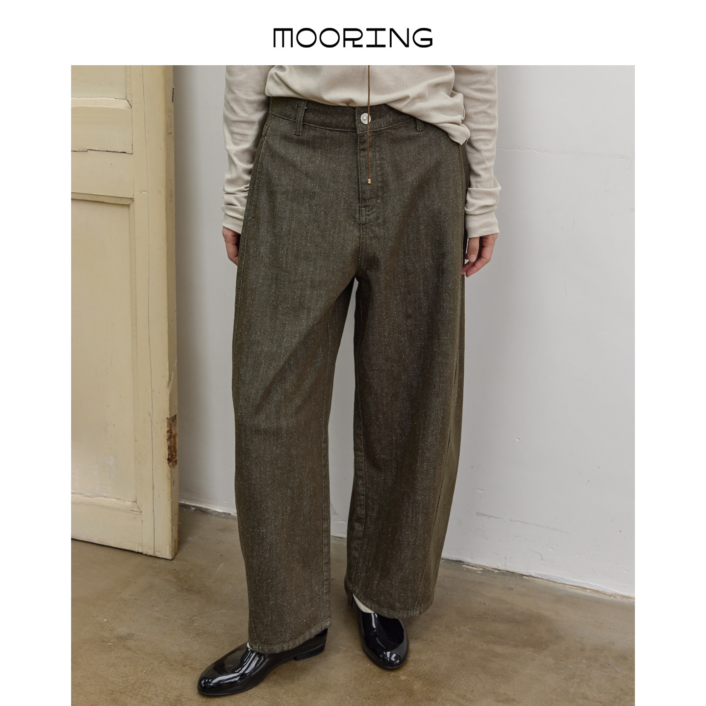 📚 MOORING泊 松弛感100%新疆长绒棉侧缝分割线显瘦遮肉高腰牛仔裤